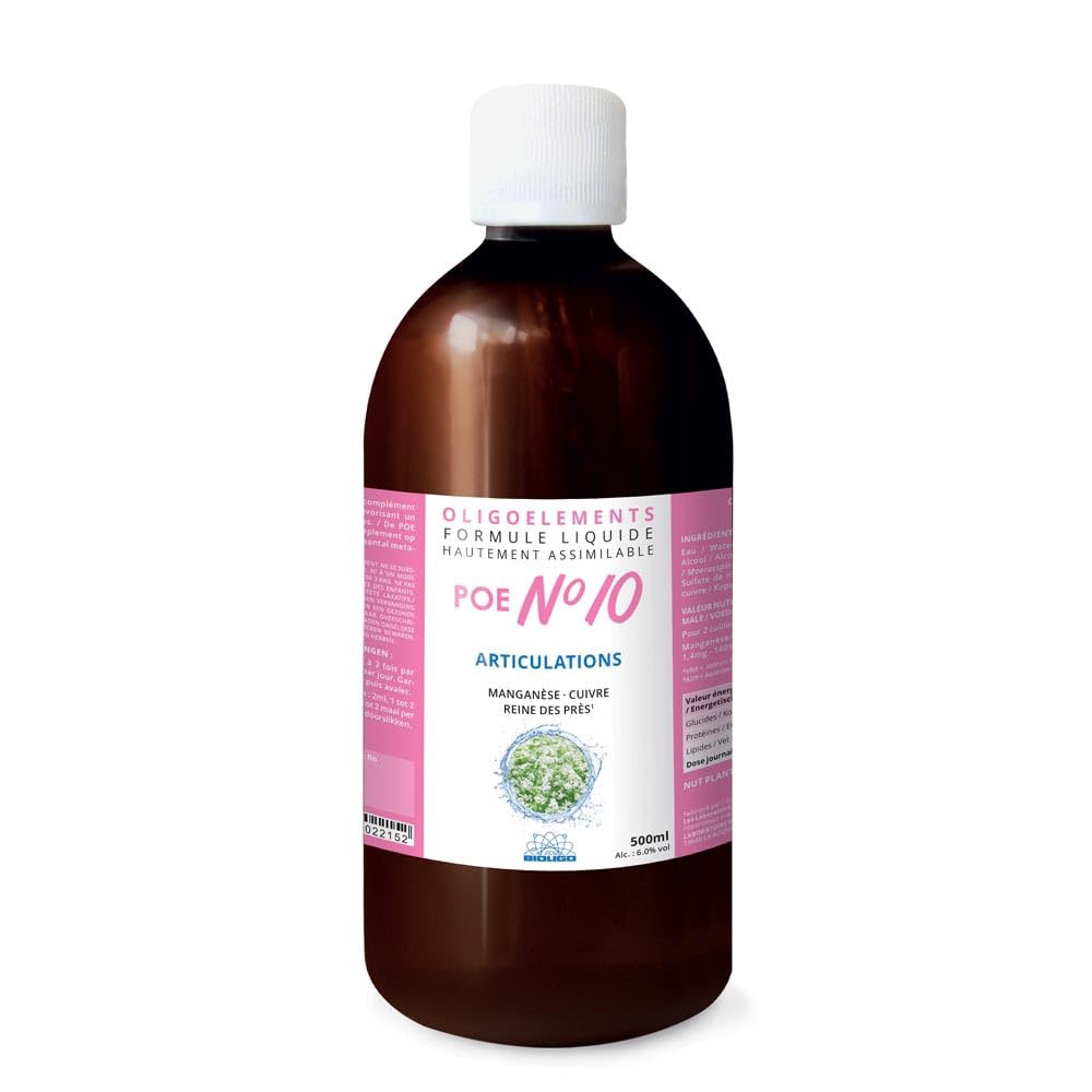 Also available in a 100ml bottle and boxes of 20 x 2ml drinkable ampoules. When our body is not functioning properly, it is biologically logical (logical with life) to use what naturally activates our metabolism: trace elements. Pioneers for over 40 years in the use of catalytic trace elements and plants, Bioligo Laboratories, drawing on their extensive experience, have combined knowledge and expertise to create a new range of high-quality, highly effective, and completely natural complexes: the Bioligophyt range. Bioligo Laboratories use catalytic trace elements in ionized form, the only directly assimilable and effective form. To these trace elements, Bioligo Laboratories have added plants with the same beneficial properties in the form of total plant extracts. Each Bioligophyt product acts easily, effectively, and comprehensively. Food supplement. This is not a medicine. Not a substitute for food. INGREDIENTS Water 58.90 , Maltose Syrup 36.45 , Alcohol 6.0 , Meadowsweet (Filipendula ulmania) 0.18 , Natural Flavoring 0.01 , Manganese Sulfate, Copper Sulfate SAFETY WARNING Food supplement. This is not a medicine. It is not a substitute for a varied and balanced diet and a healthy lifestyle. Not suitable for children under 3 years of age. Not recommended for people allergic to salicylates. See moreNot a food substitute. This is not a medicine. POE No. 10: Joints.POE N 10 - Préparation en oligoéléments - Manganèse - Cuivre - 500 ml - BioligoDESCRIPTION DU PRODUIT DESCRIPTION DU PRODUIT Disponible également en flacon de 100ml et en boîtes de 20 ampoules buvables de 2ml. Lorsque notre organisme fonctionne mal ou moins bien, il est bio-logique (logique avec la vie), d'utiliser ce qui naturellement active nos métabolismes : les oligoéléments. Pionniers depuis plus de 40 ans de l'usage des oligoéléments catalyseurs et des plantes, les laboratoires Bioligo, forts de leur longue expérience, ont réuni connaissances et savoir-faire pour réaliser une nouvelle gamme de complexes de qualité très efficace et totalement naturelle : la gamme Bioligophyt. Les laboratoires Bioligo emploient les oligoéléments catalyseurs sous forme ionisée, seule forme directement assimilable et efficace. A ces oligoéléments, les laboratoires Bioligo ont adjoint des plantes aux mêmes vertus sous forme d'extrait total de plantes. Chaque Bioligophyt agit de façon aisée, efficace et globale. Complément alimentaire. Ceci n'est pas un médicament. Ne se substitue pas à une aliment INGRÉDIENTS Eau Water 58,90 , Sirop de Maltose Maltose Siroop 36,45 , Alcool Alcohol 6,0 , Filipendula ulmania (Reine des Prés Moerasspirea) 0,18 , Arôme Naturel Natuurlijke Smaak 0,01 , Sulfate de manganèse Mangaansulfaat, Sulfate de cuivre Kopersulfaat AVERTISSEMENT DE SÉCURITÉ Complément Alimentaire. Ceci n'est pas un medicament. Ne se substitue pas à une alimentation variée et équilibrée, et à un mode de vie sain. Ne convient pas aux enfants de moins de 3 ans. Déconseillé aux personnes allergiques aux dérivés salicylés Voir plusNe se substitue pas à un aliment. Ceci n'est pas un médicament. POE N 10 : Articulations.