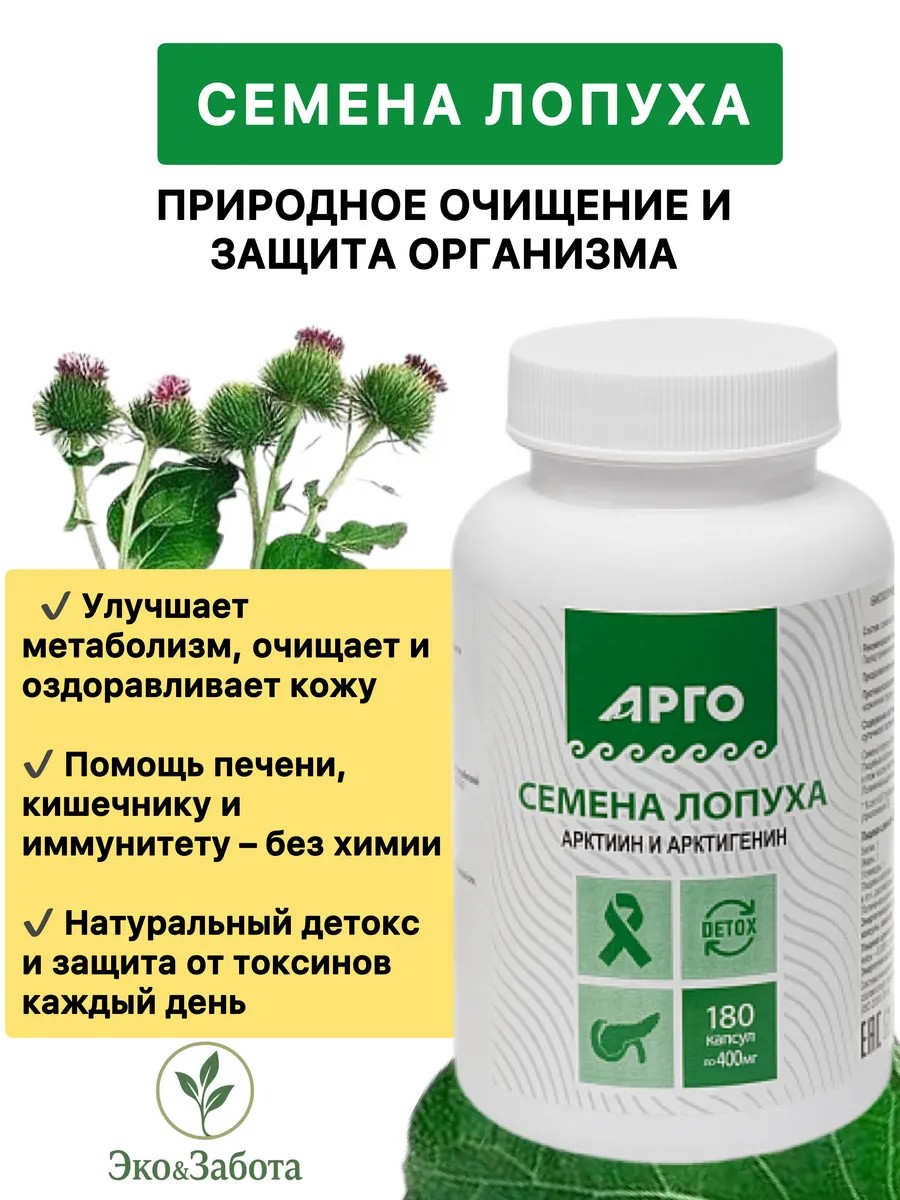 Семена лопуха Арго , капсулы, 180 шт. Улучшение работы желудочно-кишечного тракта, детоксикация.