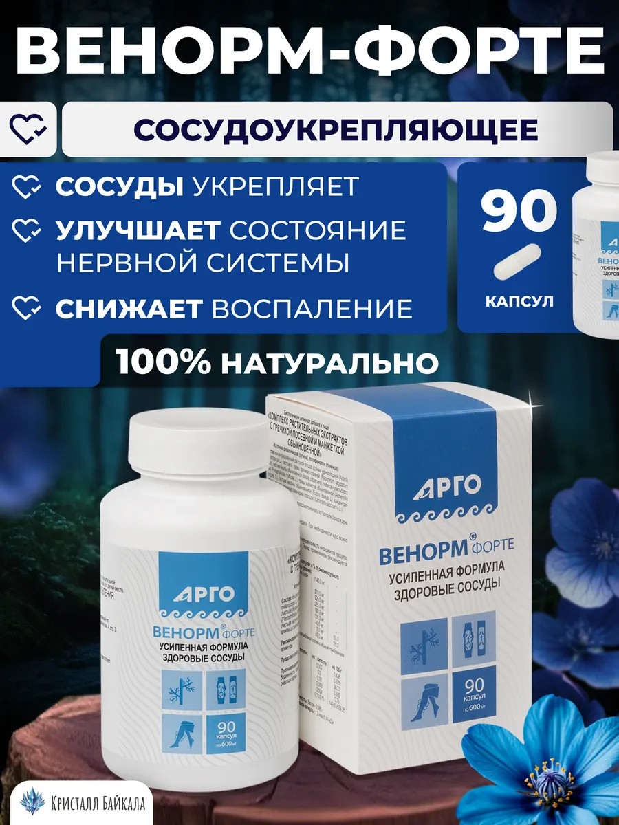 Венорм Форте Арго - это уникальное средство для укрепления сосудов и поддержания здоровья сердечно-сосудистой системы. Сочетание натуральных экстрактов аронии, гречихи, березы и других растений делает его идеальным выбором для тех, кто страдает от варикоза, гипертонии или других проблем с сосудами. Благодаря своим адаптогенным и противовоспалительным свойствам, Венорм Форте Биолит поможет улучшить ваше самочувствие, повысить иммунитет и справиться с проблемами микроциркуляции. Принимайте по 1 капсуле 3 раза в день во время еды, и уже через 4 недели почувствуете разницу. Не упустите возможность укрепить свое здоровье с помощью этого эффективного средства от Биолит. Венорм Форте Арго - это не просто капсулы, это целый комплекс витаминов для сосудов, который поможет укрепить их стенки и улучшить общее состояние организма. Эти капсулы содержат все необходимые витамины и минералы, которые способствуют нормализации работы сердечно-сосудистой системы. В состав венорм форте биолит входят витамины, которые необходимы для поддержания здоровья сосудов, а также экстракты растений, обладающих целебными свойствами. Все это делает Венорм Форте Арго идеальным выбором для тех, кто хочет поддерживать свое здоровье в отличном состоянии. Всаа капсулы Венорм Форте Арго производятся в России и проходят строгий контроль качества, поэтому вы можете быть уверены в их эффективности и безопасности. Укрепите свои сосуды и поддержите здоровье с помощью Венорм Форте Арго!