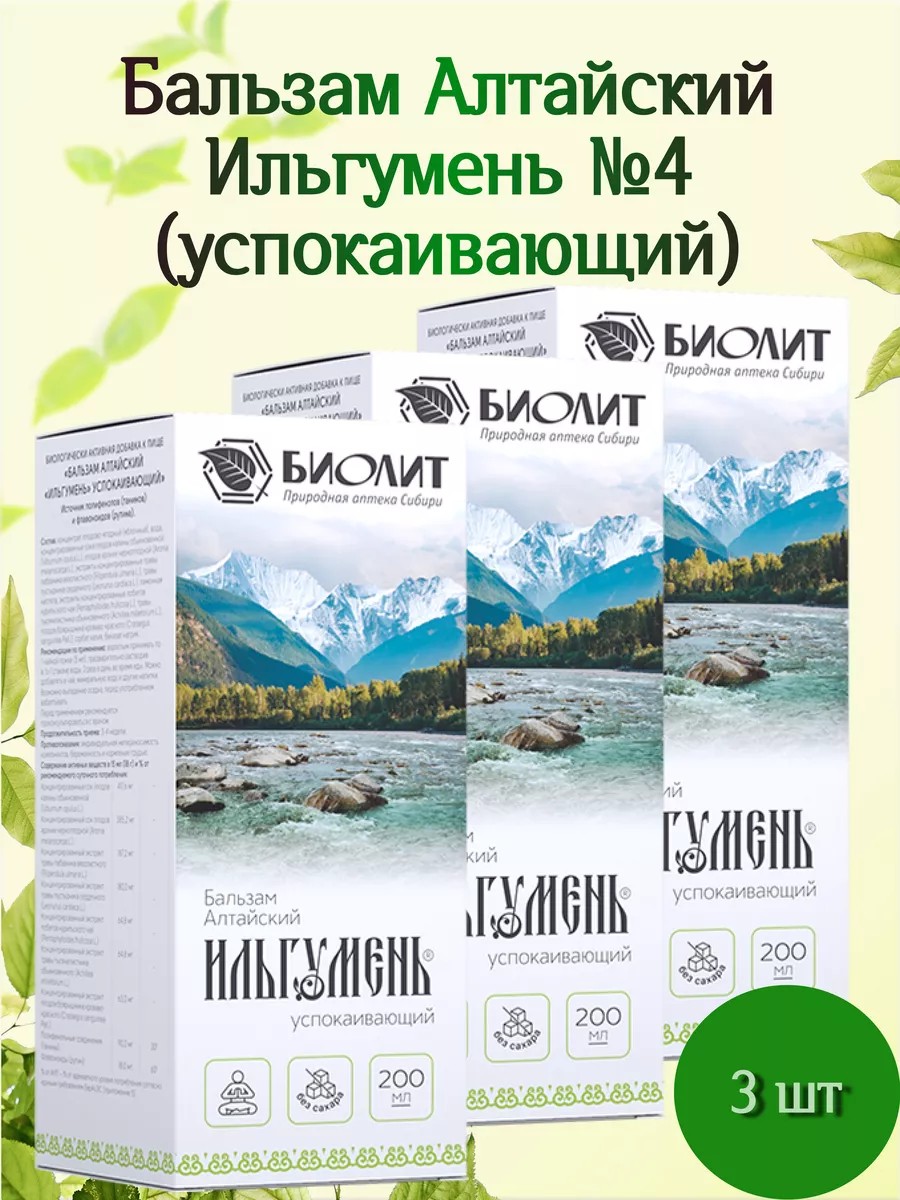 | Комплектация | Бальзам Алтайский Ильгумень №4 успокаивающий Биолит, 200 мл 3шт |