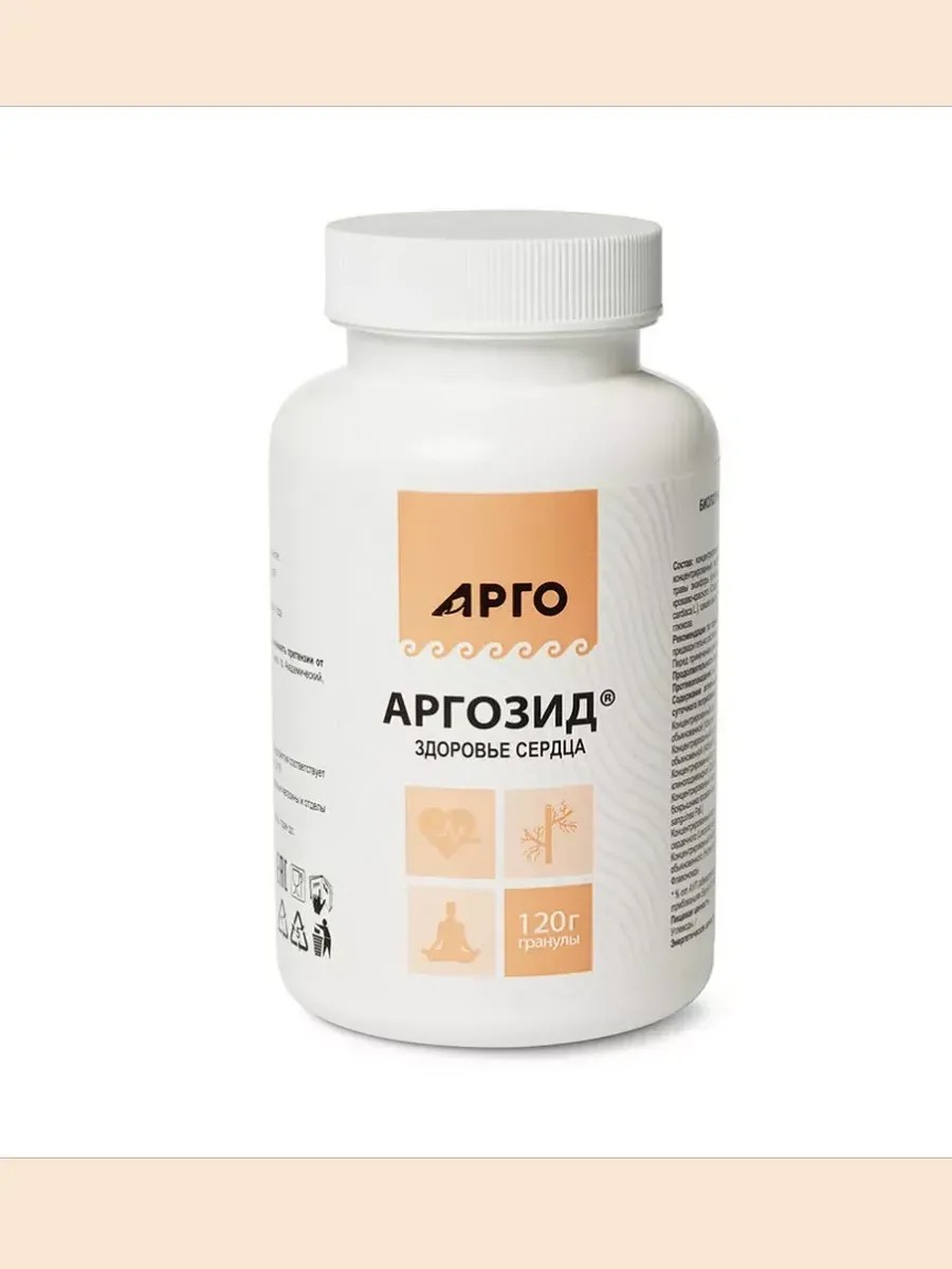 Аргозид здоровье сердца гранулы 120 г от компании ООО Биолит - это уникальное средство для поддержания здоровья сердца и сосудов! Обладает кардиотоническим действием, улучшает коронарное и мозговое кровообращение, способствует нормализации ритма и снижению давления, успокаивает центральную и вегетативную нервные системы, укрепляет сосуды. Рекомендуется для профилактики и комплексной и усиления эффекта медикаментозной терапии вегетативной дистонии, пограничной артериальной гипертонии, гипертонической болезни I-II степени, симптоматической гипертонии, ишемической болезни сердца и недостаточности кровообращения, аритмии, нарушений обмена в сердечной мышце, атеросклероза, состояний после инфаркта миокарда, сердечно-сосудистых заболеваний у пожилых людей, нарушений сна, климактерических расстройств. Принимать по 2 г (1 ч.л.) 3 раза в день, за 15-30 мин до еды, предварительно растворив гранулы в 100 мл теплой воды. Курс - 3-4 недели.