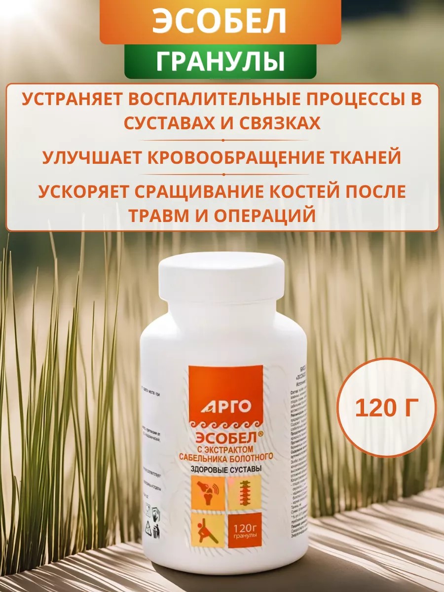 Эсобел с сабельником болотным является эффективным средством для лечения суставов при всех видах воспалительных и дегенеративных процессах. Помогает в восстановлении опорно-двигательного аппарата при травмах, повышенных нагрузках, нарушений кровообращения в хрящевой ткани и при спаечных болезнях суставов после операций.