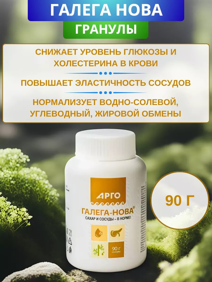 The dietary supplement "Galega-Nova" has a comprehensive effect on the vascular system, reduces blood glucose and cholesterol levels, exhibits anti-atherosclerotic and vascular-strengthening effects, and normalizes water-salt, carbohydrate, and lipid metabolism, which allows this parapharmaceutical to be used in a number of forms and complications of diabetes.