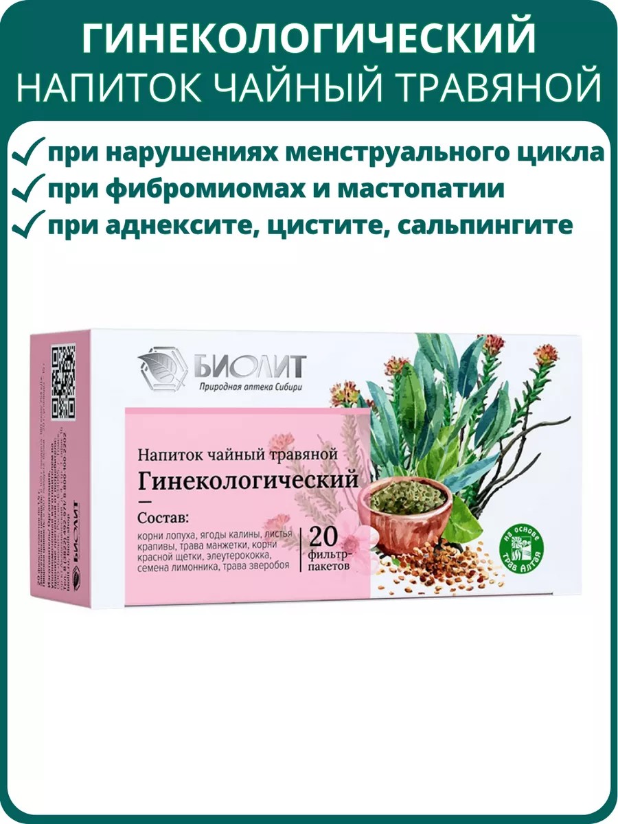 Фиточай Гинекологический, 20 фильтр-пакетов. Сбор от Биолит для женщин при нарушениях менструального цикла, миоме, мастопатии.