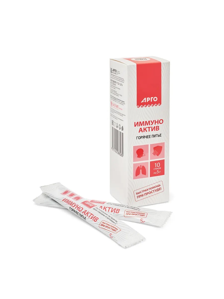 Иммуно Актив порошок оказывает противовоспалительное, антибактериальное, потогонное, отхаркивающее, а также жаропонижающее действие.