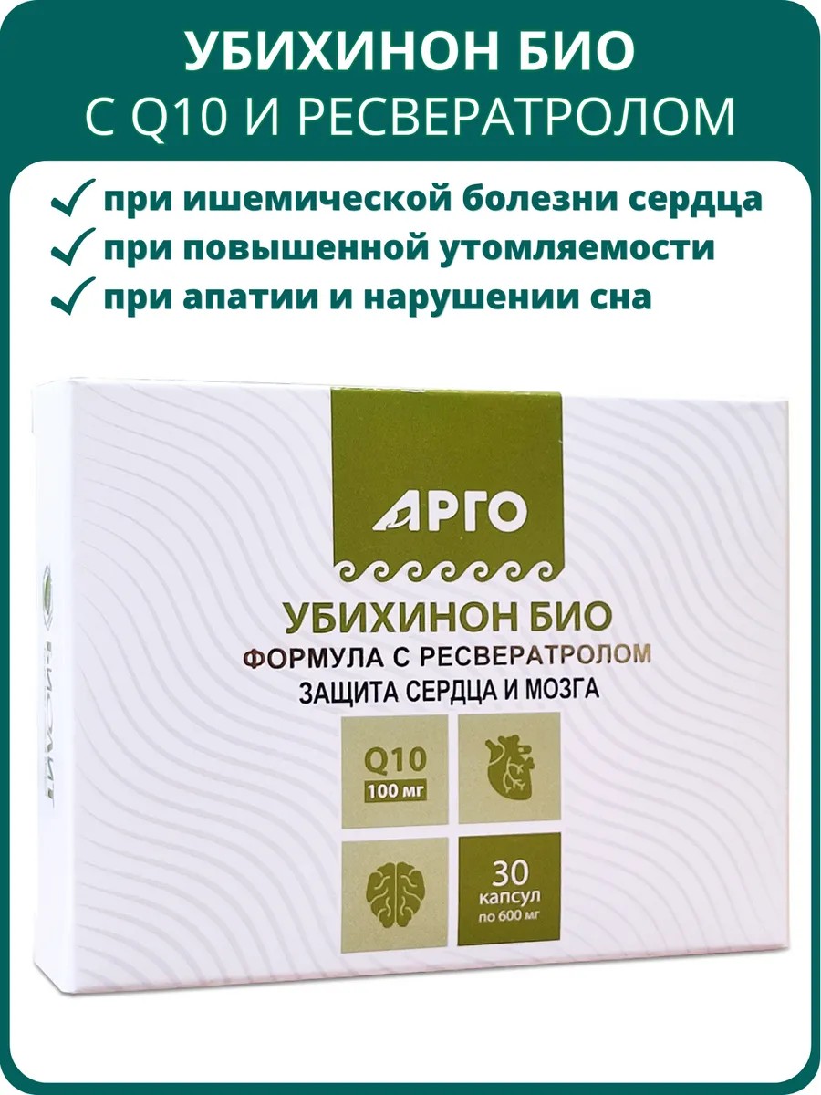 Убихинон Био от Биолит, 30 капсул, Арго. Комплекс с коэнзимом Q10 100 мг и ресвератролом для сердца, сосудов и мозга