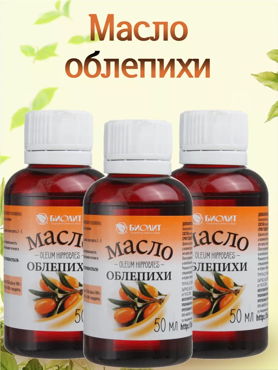 | Комплектация | Биологически активная добавка Масло облепихи Биолит, 50 мл 3шт |