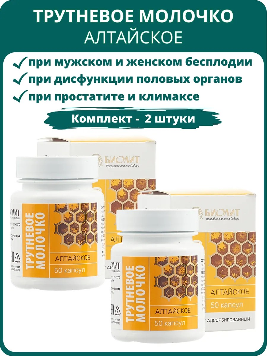 Биолит Трутневое молочко Алтайское, 50 капсул - набор 2 штуки