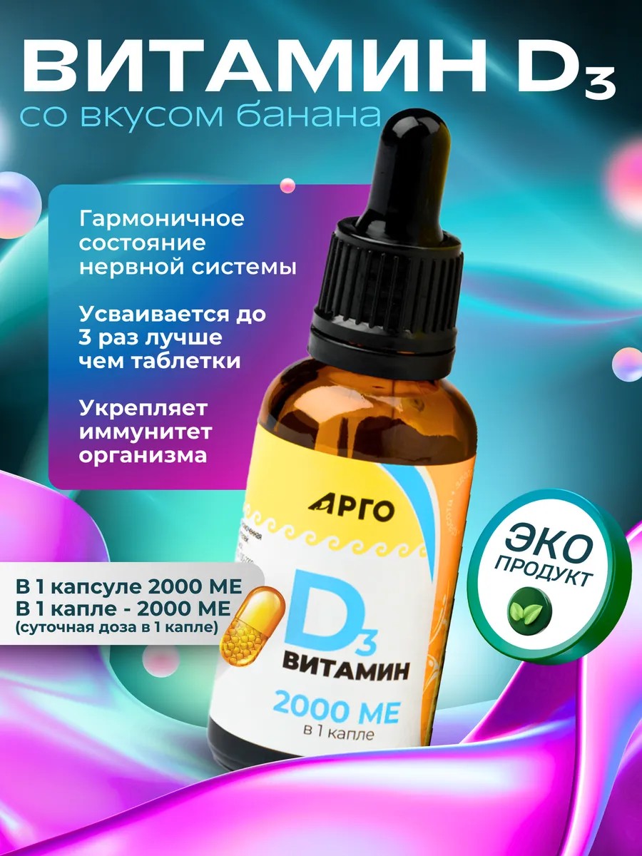 Витамин D3 2000 МЕ Капли от компании Биолит для АРГО – это высококачественное пищевое добавление, предназначенное для поддержания здоровья костей и иммунной системы. Включает в себя 2000 МЕ что способствует лучшему впитыванию кальция и фосфора, необходимых для формирования и поддержания здоровых костей и зубов. Рекомендуется для людей, имеющих повышенный риск дефицита витамина D, включая людей, редко подвергающихся солнечному свету, пожилых людей и вегетарианцев. Благодаря высокому содержанию витамина D3, этот продукт помогает укрепить иммунитет и способствует общему благополучию организма.