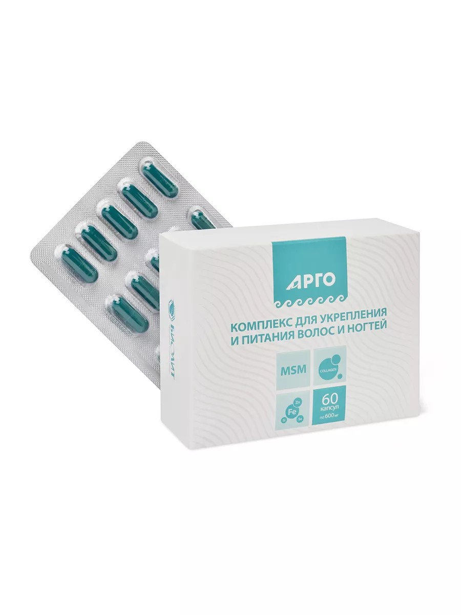 Комплекс витаминов для женщин и мужчин для укрепления и питания волос и ногтей капсулы, 60 шт комплекс витаминов для укрепления, улучшения роста и качества волос, ногтей. Включает в оптимальной дозировке экстракты трав витамины минералы аминокислоты аргинин лизин, МСМ морской коллагена I II III типов. Максимальную доступность и эффективность комплекса обеспечивают высоко- усвояемые формы витаминов (биодоступная активная форма) и минералов (органическая и хелатная форма). Физиологические дозировки позволяют применять комплекс как мужчинам, так и женщинам. МСМ (метилсульфонилметан) –органическая сера, входит в состав серосодержащих аминокислот, участвует в системе антиоксидантной защиты, регуляции воспалительных реакций, детоксикации; необходима для поддержания целостности соединительной ткани, мышц, костей. Взрослым принимать по 1 капсуле 2 раза в день. Продолжительность приема: 2-3 месяца. При необходимости курс можно повторить.