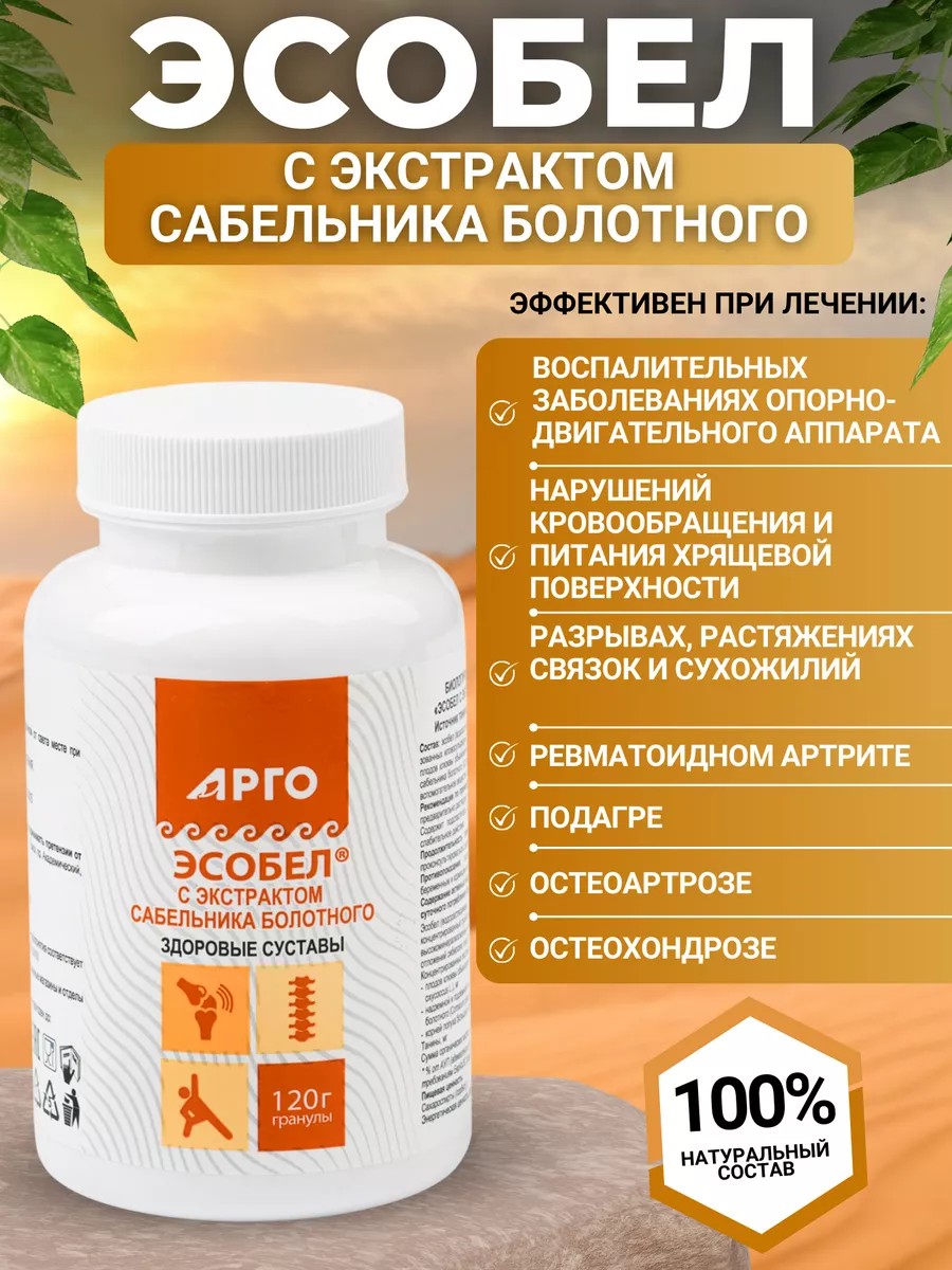 Эсобел с сабельником обладает выраженной противовоспалительной активностью (уменьшает болевой синдром, гиперемию), препятствует образованию спаек, вызывает рассасывание уже существующих. Усиливает регенерацию в очаге воспаления, сохраняет и восстанавливает подвижность суставов.