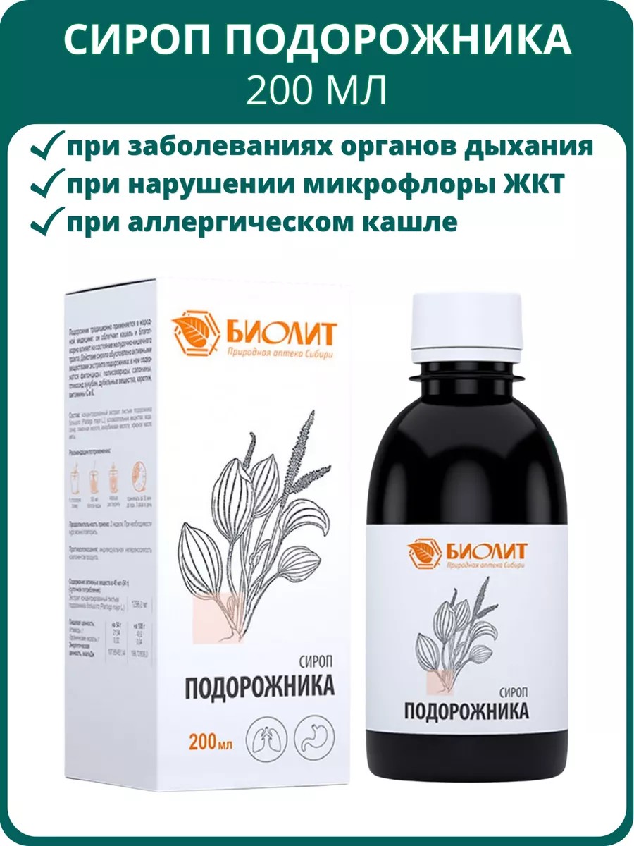 биолит Сироп подорожника, 200 мл
