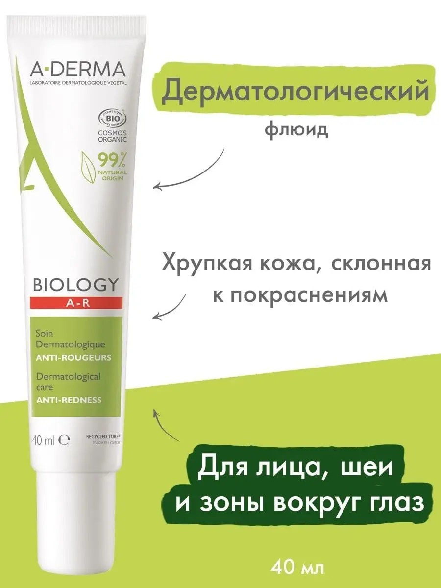 A-DERMA BIOLOGY крем флюид для кожи склонной к покраснениям А-Дерма