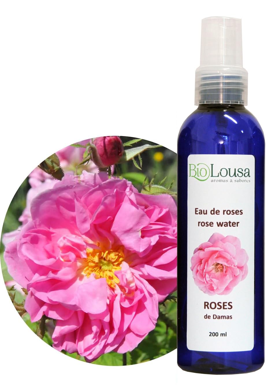 BioLousa Organic Damask rose hydrosol 100% natural no artificial fragrance or preservatives 250 ml with spray rose water with fragrance
