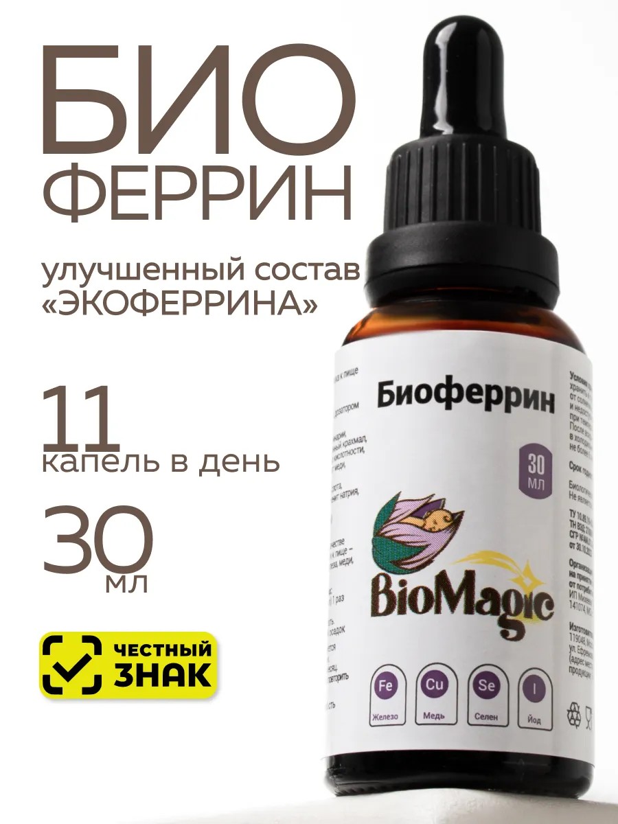 BioMagic Биоферрин, жидкое железо с селен, йод, медь, БАД