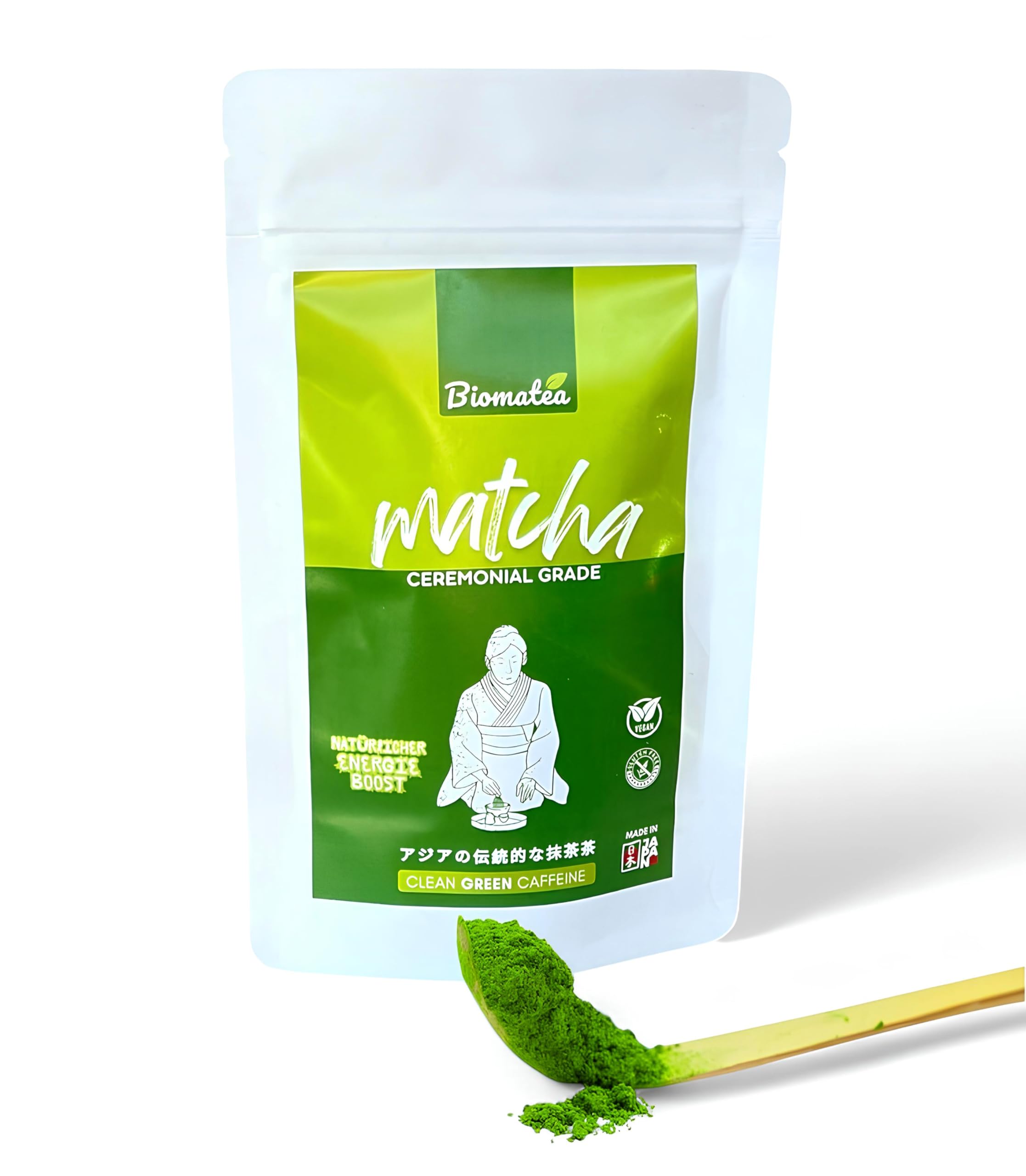 Biomatea Premium Ceremonial Matcha uit Japan, 50 g in ritszak, 100 puur matcha-poeder, ceremoniële kwaliteit, groene theepoeder aan de lucht gedroogd en gemalen steen