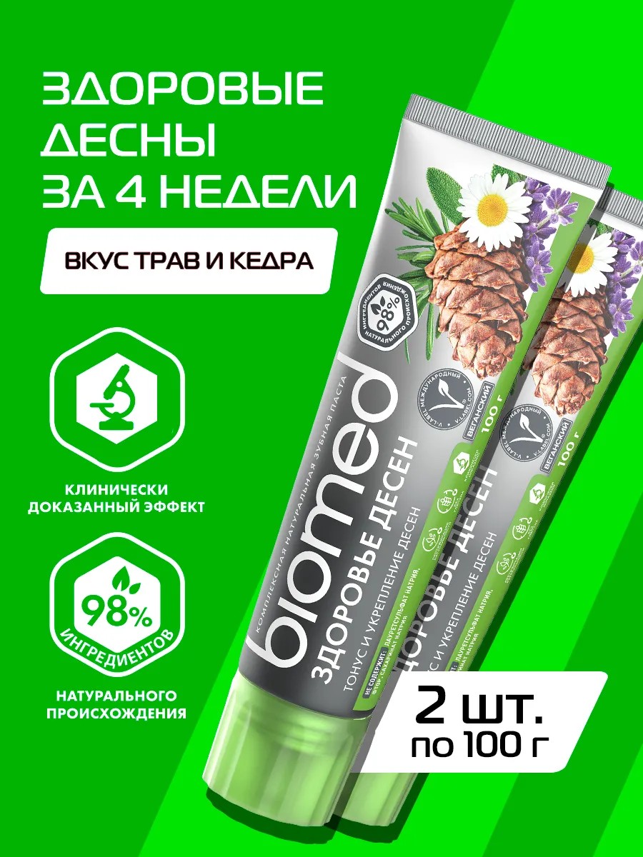 Гигиена полости рта и уход за зубами очень важны в повседневной жизни человека. Комплексная зубная паста без фтора взрослая BIOMED GUM HEALTH ЗДОРОВЬЕ ДЕСЕН (200 мл, 2 шт.) - лучшая натуральная зубная паста по версии Live Organic Awards-2021! Противовоспалительная паста БИОМЕД GUM HEALTH на каждый день успокаивает десны и снижает их кровоточивость, эффективно подавляет рост бактерий, вызывающих неприятный запах изо рта. На 98,5% состоит из компонентов натурального происхождения: