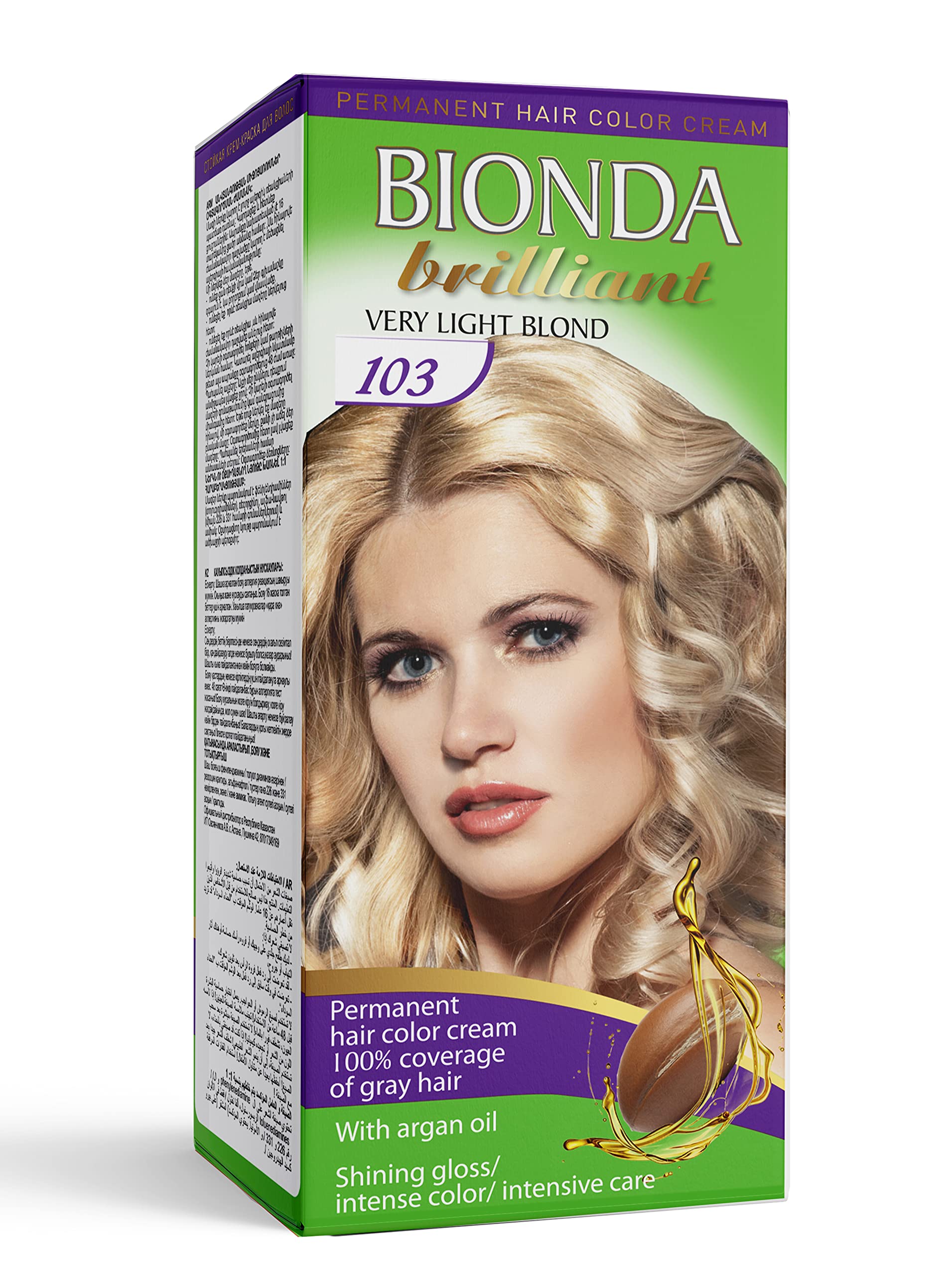 Bionda Brilliant permanente haarkleur met arganolie 100 ml, glanzende glans, intense kleur (103 zeer lichtblond)
