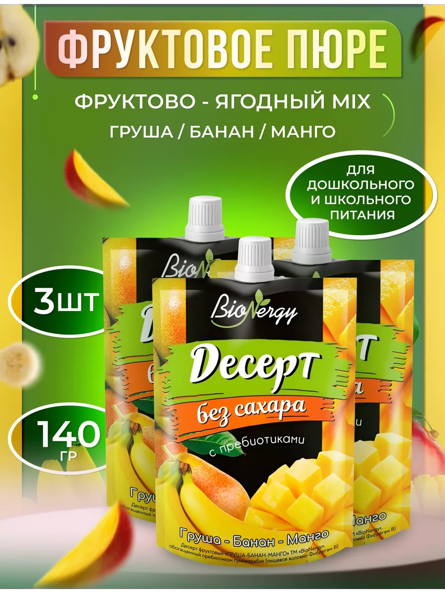 BioNergy Десерт фруктовый Груша Банан Манго без сахара 3 шт