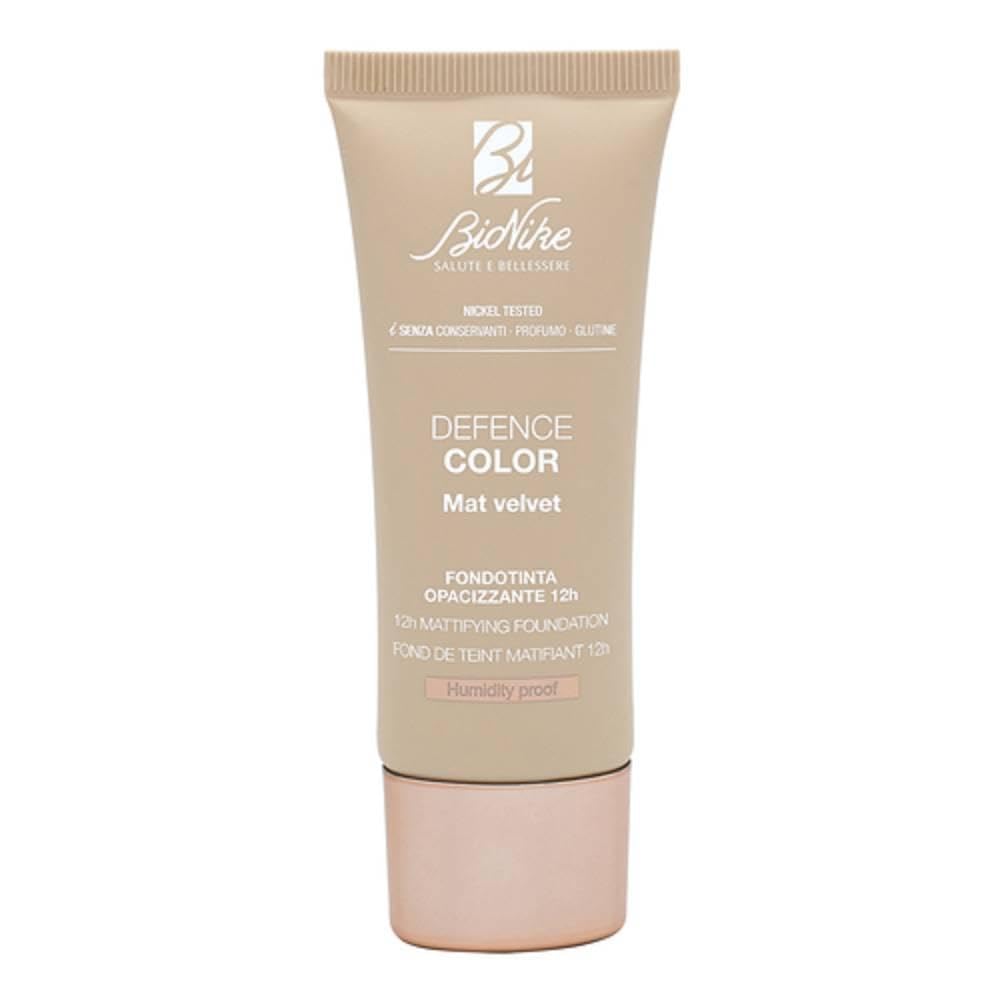 Bionike Defence Color - Fond de teint mat velvet opaque 12h SPF 15 pour peau mixte et grasse - Minimise les pores et les imperfections - Effet mat même dans des conditions d'humidité élevée - 30 ml
