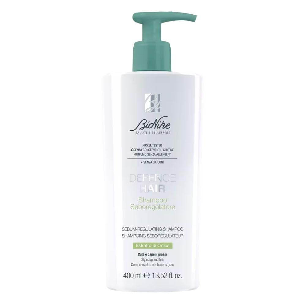 Ideal formula to rebalance the scalp's sebum production and limit the spread of sebum onto the hair fiber. Thanks to effective sebum-regulating ingredients, it has a purifying action: hair regains volume and lightness for longer. INGREDIENTS Ingredients: aqua (water), sodium myreth sulfate, methylpropanediol, cocamidopropyl betaine, PEG-200 hydrogenated glyceryl palmate, glycerin, cocamidopropylamine oxide, polyglyceryl-4 laurate sebacate, polyglyceryl-6 caprylate caprate, sodium coamphoamphoamphotericin, sodium. PEG-1 50 distearate acetate, saw palmetto fruit extract, nettle leaf extract, PEG-7 glyceryl cocoate, caprylyl glycol, ethylhexylglycerin, hydroxypropyl guar hydroxypropyltrimonium chloride, citric acid, phenylpropanol, fragrance. SAFETY WARNING Apply to wet hair and gently massage into the scalp. Leave on for a few minutes before rinsing. Use 2-3 times per week more frequent use is not contraindicated. See moreAstringent and sebum-normalizing properties, rebalance the sebaceous secretion of the scalp.Bionike Defence Hair Shampooing séborégulateur 400 mlDESCRIPTION DU PRODUIT DESCRIPTION DU PRODUIT Formulation idéale pour rééquilibrer la sécrétion sébacée du cuir chevelu et limiter la diffusion du sébum sur la fibre capillaire. Grâce à des ingrédients séborégulateurs efficaces, il joue une action purifiante : les cheveux retrouvent volume et légèreté, plus longtemps. INGRÉDIENTS Ingrédients : aqua (water), sodium myreth sulfate, methylpropanediol, cocamidopropyl betaine, PEG-200 hydrogenated glyceryl palmate, glycerin, cocamidopropylamine oxide, polyglycéryl-4 laurate sebacate, polyglyceryl-6 caprylate caprate, sodium coamphoamphoamphophie, sodium. Acétate PEG-1 50 distearate, serenoa serrulata fruit extract, urtica dioica leaf extract (urtica dioica (nettle) leaf extract), PEG-7 glyceryl cocoate, caprylyl glycol, éthylhexylglycerin, hydroxypropyl guar hydroxypropyltrimonium chloride, citric acid, phenylpropanol, parfum (fragrance). AVERTISSEMENT DE SÉCURITÉ Appliquer sur cheveux mouillés et masser doucement sur le cuir chevelu. Laisser poser quelques minutes avant le rinçage. Utiliser 2 3 fois par semaine, une utilisation plus fréquente n'est pas contre-indiquée. Voir plusPropriétés astringentes et sébonormalisantes, rééquilibrent la sécrétion sébacée du cuir chevelu.