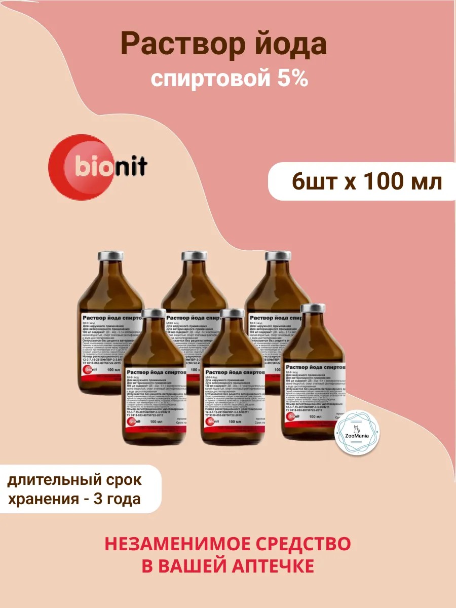 Раствор йода спиртовой 5% применяют наружно. При обработке ран участки кожи смазывают по краям раны марлевыми тампонами, смоченными в растворе йода спиртовом 5%, не нанося его непосредственно на рану. Обработки проводят дважды в сутки до выздоровления, но не более 7 суток. Обработку операционного поля производят дважды, в начале и в конце операции. Кожу в местах инъекций дважды протирают стерильным марлевым тампоном, смоченным в растворе йода спиртовом 5%. Для отвлекающего действия препарат наносят на кожу в виде сетки.