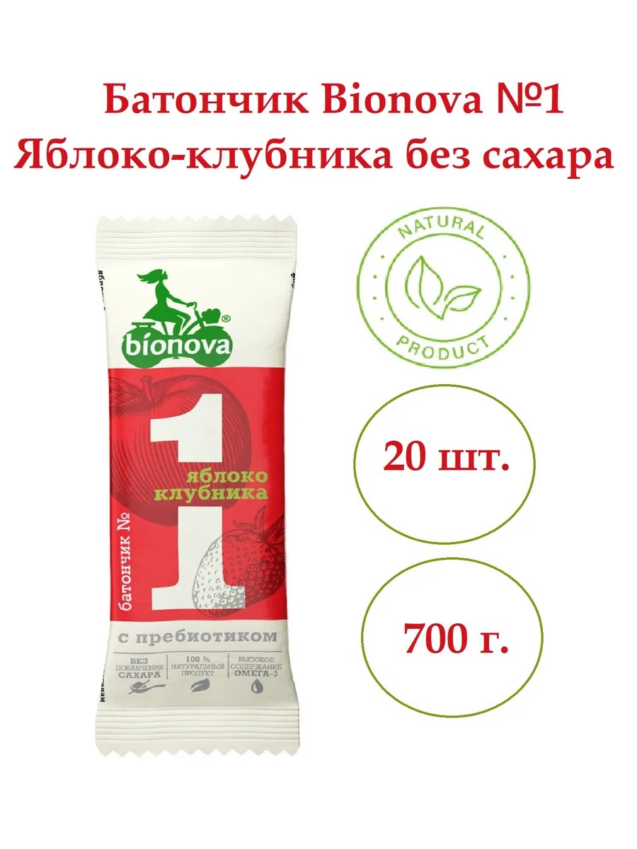 Bionova Батончик яблоко-клубника без сахара, 20 шт