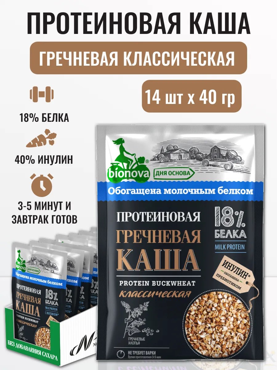 Bionova Протеиновая каша Гречневая без сахара 40 гр*14