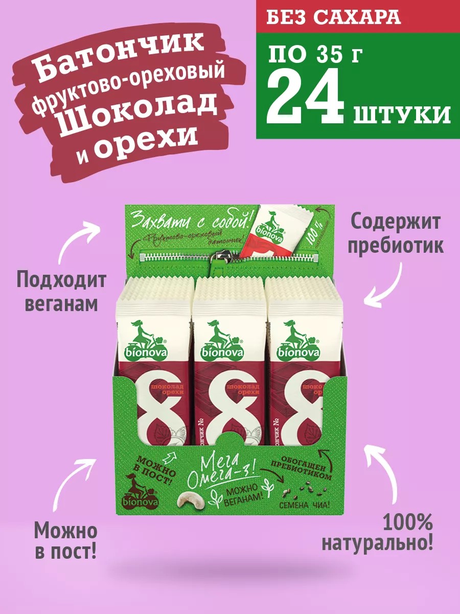 Bionova Фруктово-ореховый батончик Шоколад&Орехи с пребиотиком
