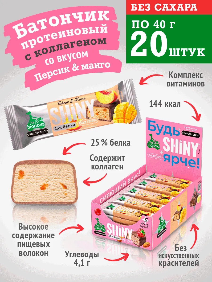Bionova Глазированный протеиновый батончик ShinyПерсик и Манго