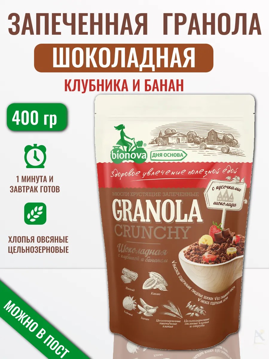 Bionova Гранола шоколадная с клубникой и бананом 400 гр