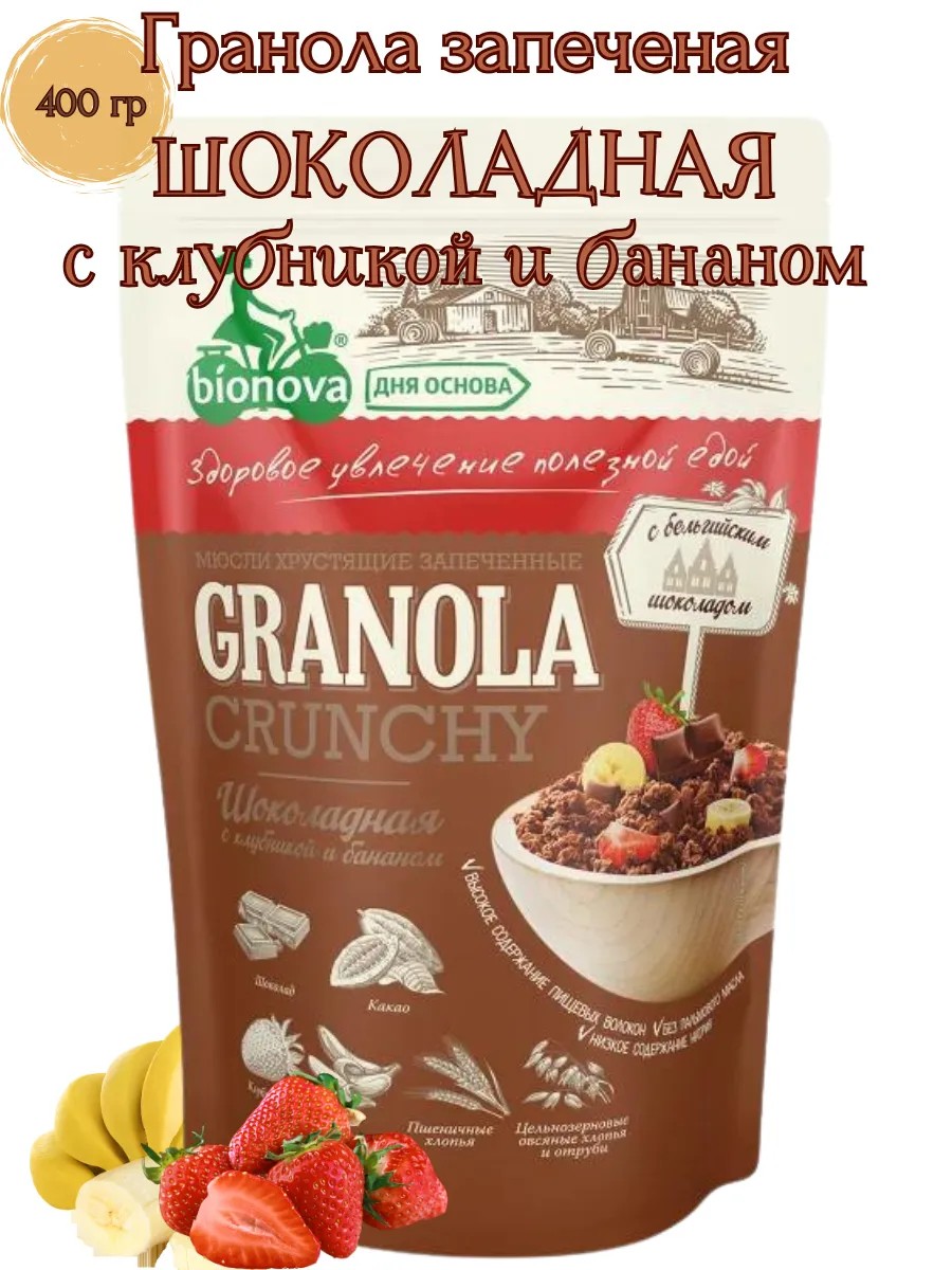 Bionova Гранола Шоколадная с клубникой и бананом без сахара, 400г