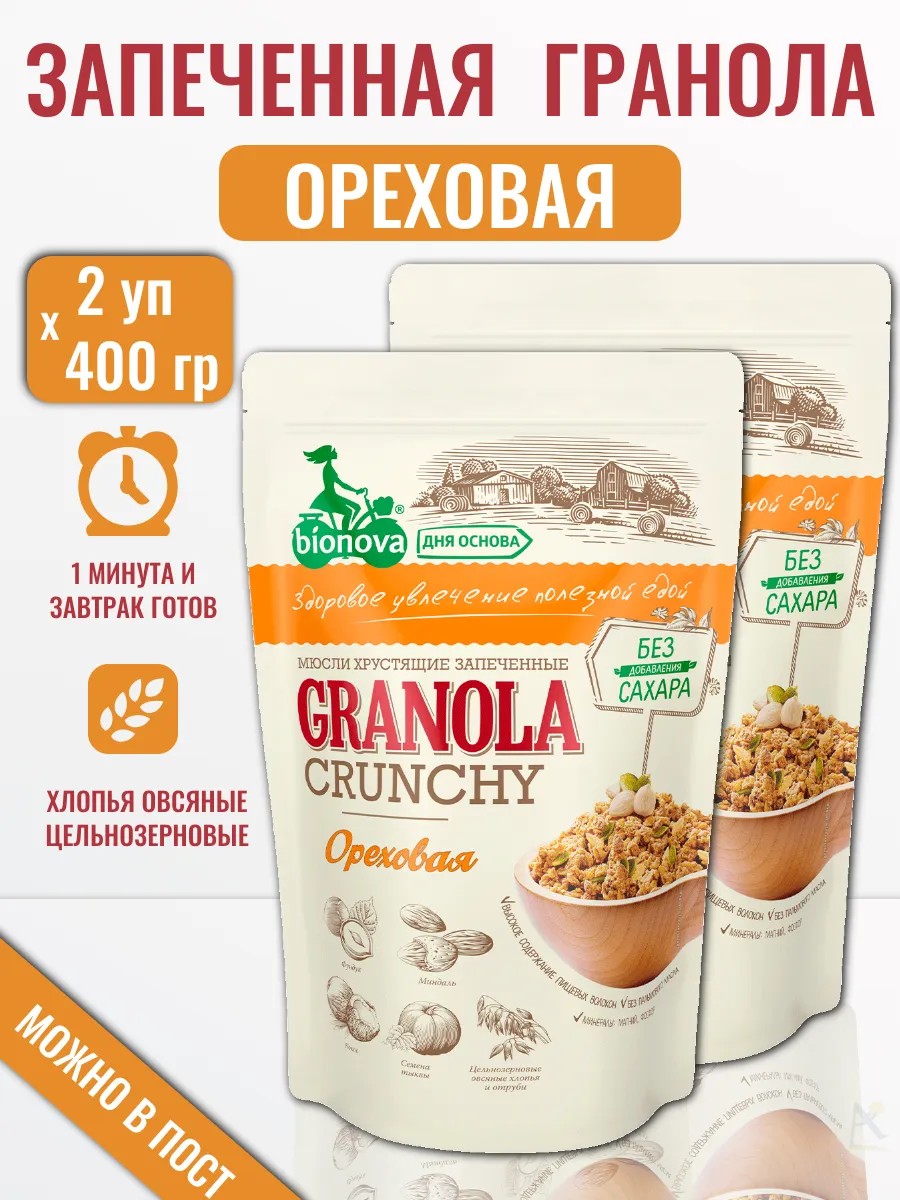 Bionova Мюсли хрустящие Гранола ореховые без сахара 400 гр*2