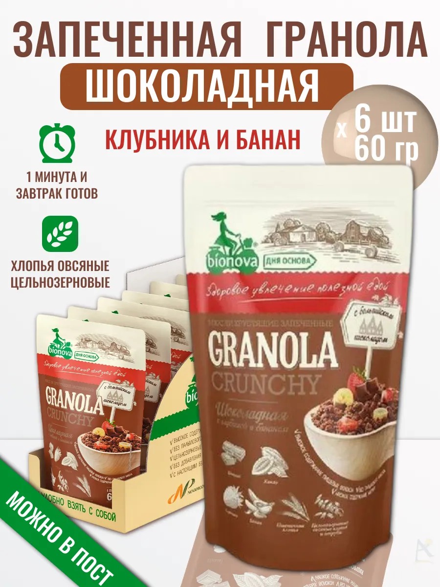 Bionova Мюсли шоколадные Гранола с клубникой и бананом 60 гр*6