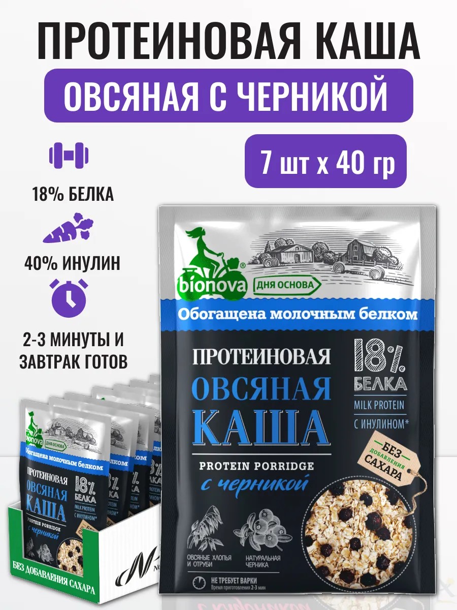 Bionova Протеиновая каша Овсяная с черникой без сахара 40 гр*7