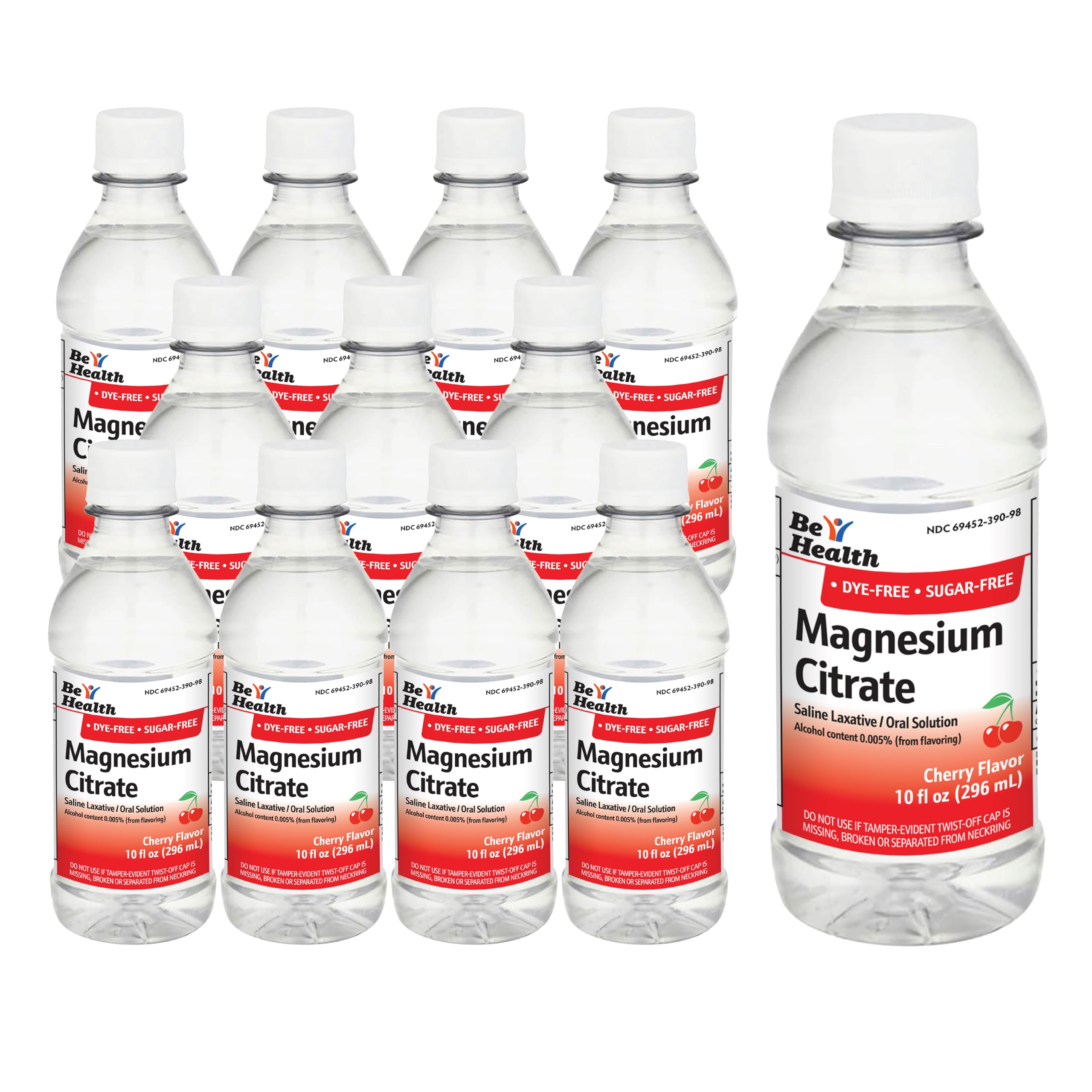 Don't let irregularity get in your way! Great-tasting cherry flavor saline laxative is sugar free. Get things moving! This dye-free oral solution is proudly made in the USA Helps the intestines hold onto water so bowel movements are easier. Say so long to discomfort! Relieve occasional constipation or clean stool from the intestines before surgery or certain bowel procedures such as colonoscopy. Fast acting! Be Health Magnesium Citrate Oral Solution generally produces bowel movement in 30 minutes to 6 hours, so you can get back to living. Reach for relief! Contains active ingredient Magnesium Citrate 1.745g (saline laxative with 290 mg magnesium and 1mg sodium) in each fluid ounce. Contains Pack of 12 Bottles. Each bottle contains 10 fluid ounces.