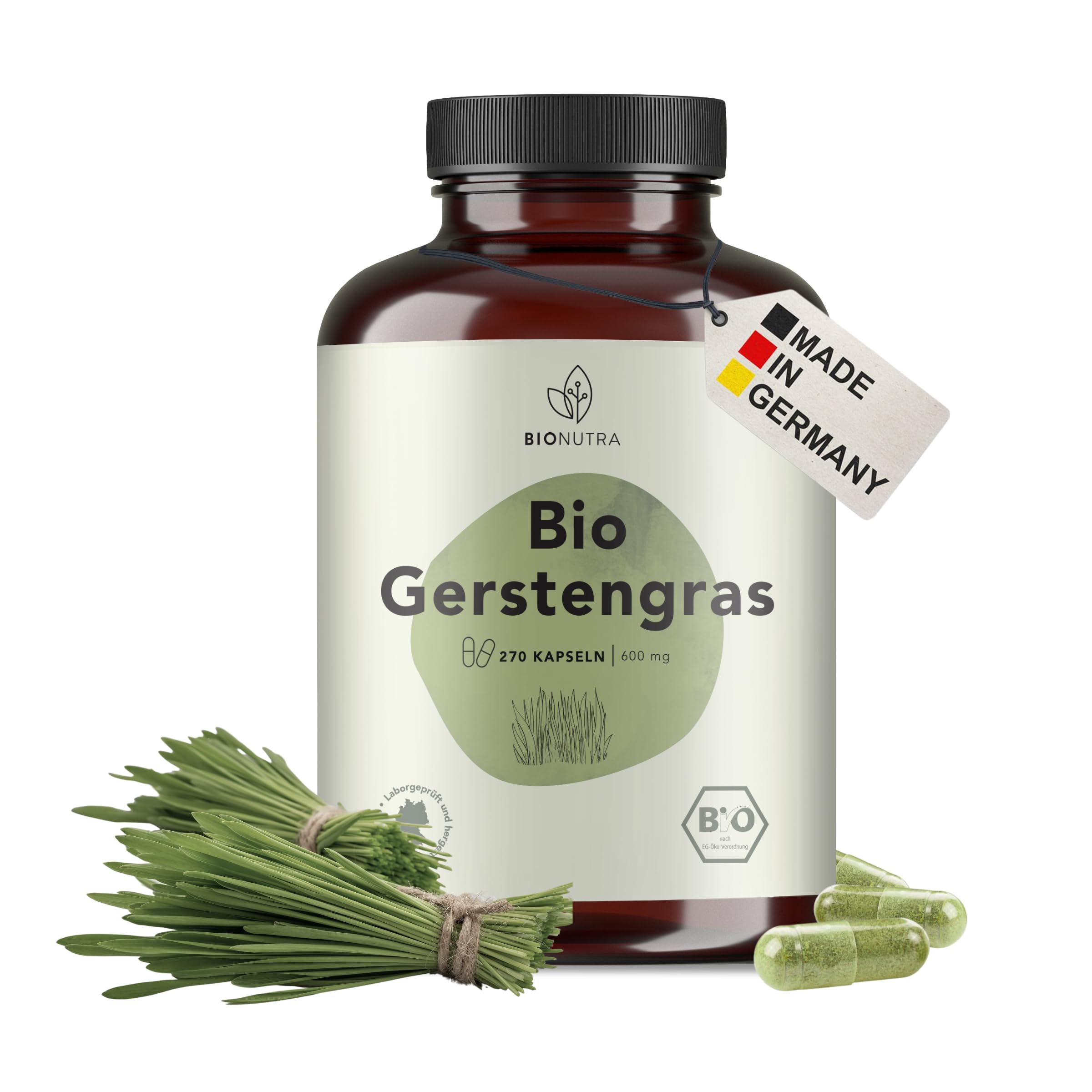 BIONUTRA – "Nature Meets Science" – Our team, comprised of former researchers from the Charité University Hospital in Berlin and nutritionists, finds modern solutions in nature. Through 100 plant-based, organic superfoods and supplements, we aim to make healthy eating and holistic health accessible to everyone. OUR CUSTOMER COMMITMENT – Quality products don't have to be expensive. We focus on generous portions, minimal packaging, short delivery routes, and avoid costly advertising. Instead, we invest in personalized customer service, genuine satisfaction, and word-of-mouth. Your inquiry will receive a personal response from our founding team within 24 hours. GERMAN QUALITY: Bionutra capsules are made from high-quality, natural raw materials and a plant-based capsule shell (HPMC). They are vegan, lactose-free, gluten-free, and additive-free. Each batch is produced in Germany according to HACCP standards. 2-MONTH COURSE – 270 capsules, each containing 600 mg of organic barley grass powder with good bioavailability. Recommended daily dose: 4 to 8 capsules, providing up to 67 days of use. In naturopathy, barley grass is often combined with other organic superfoods such as spirulina, chlorella, turmeric, or moringa. HIGH-DOSE ORGANIC BARLEY GRASS CAPSULES – High-quality organic barley grass (Hordeum vulgare) powder, delicately dried and finely ground, sourced exclusively from controlled organic farming in Europe. Barley grass is a traditional superfood rich in natural chlorophyll, essential nutrients, phytochemicals, and folic acid – prized in plant-based nutrition and holistic approaches, particularly for skin and hair.BIONUTRA – «La nature rencontre la science» – Notre équipe composée d'anciens chercheurs de l'hôpital universitaire Charité de Berlin et de nutritionnistes voit dans la nature des réponses modernes. Grâce à des super-aliments et compléments bio 100 végétaux, nous voulons rendre l'alimentation saine et la santé holistique accessibles à tous. NOTRE ENGAGEMENT CLIENT – Des produits de qualité n'ont pas besoin d'être chers. Nous misons sur un contenu généreux, des emballages réduits, des trajets de livraison courts et évitons la publicité coûteuse. À la place, nous investissons dans un service client personnalisé, la satisfaction authentique et le bouche-à-oreille. Votre demande reçoit une réponse personnelle de notre équipe fondatrice sous 24 heures. QUALITÉ ALLEMANDE : Les gélules Bionutra sont fabriquées à partir de matières premières naturelles de haute qualité et d'une enveloppe végétale (HPMC). Elles sont véganes, sans lactose, sans gluten et sans additifs. Chaque lot est produit en Allemagne selon les normes HACCP. CURE DE 2 MOIS – 270 gélules contenant chacune 600 mg de poudre d'herbe d'orge bio, avec une bonne biodisponibilité. Dose journalière recommandée : 4 à 8 gélules, soit jusqu'à 67 jours d'utilisation. En naturopathie, l'herbe d'orge est souvent associée à d'autres super-aliments bio comme la spiruline, la chlorella, le curcuma ou le moringa. GÉLULES D'HERBE D'ORGE BIO HAUTEMENT DOSÉES – Poudre d'herbe d'orge bio (Hordeum vulgare) de haute qualité, délicatement séchée et finement moulue, issue exclusivement de l'agriculture biologique contrôlée en Europe. L'herbe d'orge est un super-aliment traditionnel riche en chlorophylle naturelle, nutriments essentiels, composés phytochimiques et acide folique – prisée en nutrition végétale et dans les approches holistiques, notamment pour la peau et les cheveux.BIONUTRA Gélules d'herbe d'orge bio hautement dosées – 4800mg jour, 270 gélules, véganes, sans additifs, poudre pure, fabriqué en Allemagne 194 g (Lot de 1)