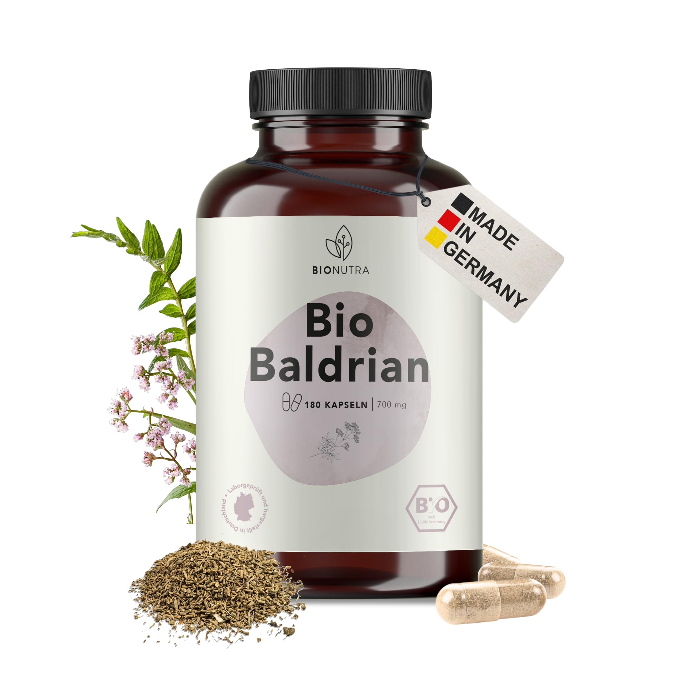 BIONUTRA: Our team is made up of former researchers from the Charité University Hospital in Berlin and passionate nutritionists who are convinced of the benefits of natural products for our well-being. Science is revealing more and more every day how unprocessed natural foods can help us overcome everyday challenges. Our organic plant-based food supplements and superfoods are designed to contribute to the well-being and health of as many people as possible. MAXIMIZING VALUE FOR OUR CUSTOMERS: We work hard to offer you organic foods and food supplements at a competitive price. To achieve this goal, we minimize packaging, reduce our margins, and do little advertising. Our success is due to the loyalty of our first customers and word-of-mouth recommendations. Because you have legitimate questions about our products, a member of our team will answer your questions in French within 24 hours. MADE IN GERMANY, GERMAN EXCELLENCE: Each batch is manufactured and inspected in Germany according to HACCP safety standards for flawless quality. Bionutra capsules are plant-based, with the capsule containing the organic ingredients being made of HPMC, and are guaranteed lactose-free, gluten-free, and additive-free. Throughout the manufacturing process and up until delivery, our capsules are completely free from magnesium stearate, titanium oxide, plasticizers, and other additives. 6 MONTHS OF CONSUMPTION: 180 capsules, each containing 700 mg of organic valerian root powder, good bioavailability. Recommended daily dose: 1-2 capsules, sufficient for 90-180 days. When purchg valerian tablets, there may often be binders or additives that are not contained in our capsules. ORGANIC VALERIAN CAPSULES: Organically grown valerian roots (Valeriana officinalis), harvested, gently dried, and then finely ground. Analyzed in a laboratory and then packaged in capsules. Valerian has been used since ancient times for its sedative and relaxing effects. The roots, in particular, contain a multitude of essential oils and active substances (see references ).BIONUTRA : Notre équipe est composée d'anciens chercheurs de l'hôpital universitaire de la Charité de Berlin et de nutritionnistes passionnés qui sont convaincus des bienfaits des produits naturels pour notre bien-être. La science dévoile chaque jour un peu plus comment les aliments naturels non-transformés permettent de surmonter les défis du quotidien. Nos compléments alimentaires et superaliments biologiques végétaux sont conçus pour contribuer au bien-être et à la santé du plus grand nombre. MAXIMISER LA VALEUR POUR NOS CLIENTS : Nous travaillons dur pour vous offrir des aliments et compléments alimentaires biologiques à un prix compétitif. Pour atteindre cet objectif nous minimisons l'emballage, réduisons nos marges et faisons peu de publicité. C'est la fidélité de nos premiers clients et le bouche-à-oreille qui expliquent nos succès. Parce que vous avez des questions légitimes sur nos produits, un membre de notre équipe répondra en français à vos questions dans les 24 heures. MADE IN GERMANY, EXCELLENCE ALLEMANDE : Chaque lot est fabriqué et contrôlé en Allemagne selon les normes de sécurité HACCP pour une qualité sans faille. Les gélules Bionutra sont végétales, la capsule contenant les ingrédients biologiques étant en HPMC et sont garanties sans lactose, sans gluten ni additifs. Tout au long du processus de fabrication et jusqu'à la livraison, nos gélules sont totalement exemptes de stéarate de magnésium, d'oxyde de titane, de plastifiants et d'autres additifs. 6 MOIS DE CONSOMMATION : 180 gélules contenant chacune 700 mg de poudre de racine de valériane bio, bonne biodisponibilité. Dose journalière recommandée : 1-2 gélules, suffisante pour 90-180 jours. Lors de l'achat de comprimés de valériane (Valeriana Tablets), il peut souvent y avoir des liants ou des additifs qui ne sont pas contenus dans nos gélules. GÉLULES DE VALÉRIANE BIO : Racines de valériane (Valeriana officinalis) cultivées en agriculture biologique, récoltées, séchées délicatement puis finement moulues. Analysé en laboratoire puis conditionné en gélules. La valériane est utilisée depuis l'antiquité pour son effet sédatif et relaxant. Les racines en particulier contiennent une multitude d'huiles essentielles et de substances actives (cf. références ).