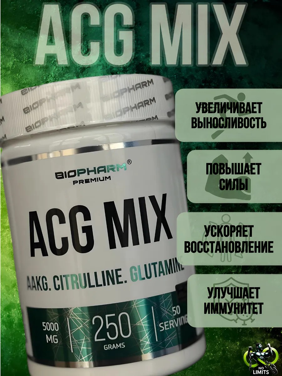 AAKG, Citrulline, Glutamine (ACG Mix) from Biopharm is a comprehensive sports supplement designed to increase endurance, strength, and post-workout recovery. L-arginine alpha-ketoglutarate (AAKG): A precursor of nitric oxide (NO), which dilates blood vessels, improves blood circulation, and delivers nutrients to muscles. L-citrulline: Converts in the body to L-arginine, helping to increase NO synthesis. L-glutamine: An essential amino acid involved in protein synthesis, muscle recovery, strengthening the immune system, and reducing catabolism.