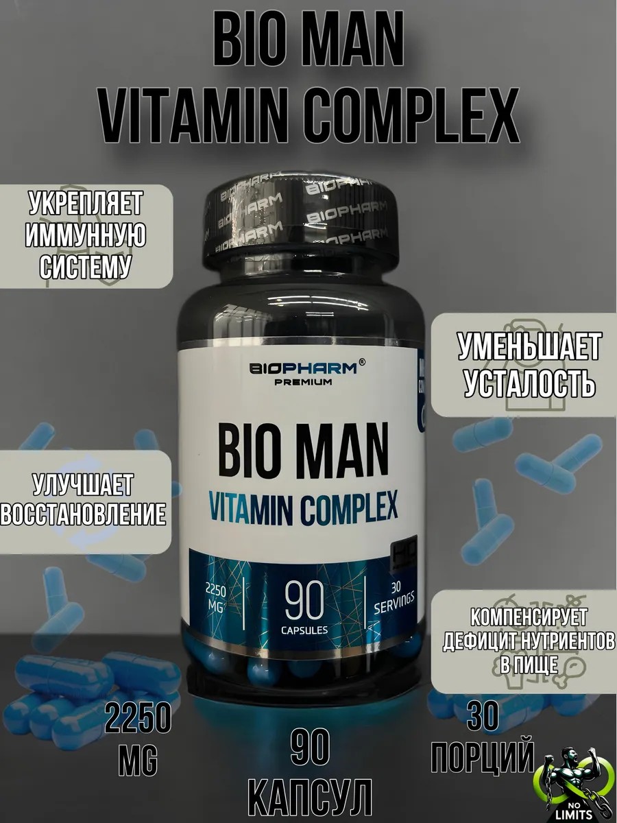 Bio Man Vitamin Complex от BioPharm — это комплексный комплекс витаминов и минералов, разработанный специально для поддержания мужского здоровья. Формула, обогащенная важными витаминами группы B, витаминами C, D, E, а также цинком и селенем, способствует повышению энергии, укреплению иммунитета и поддержанию нормального функционирования организма. Регулярный прием Bio Man Vitamin Complex поможет вам чувствовать себя бодрым и полным сил, поддерживая ваше здоровье на оптимальном уровне.
