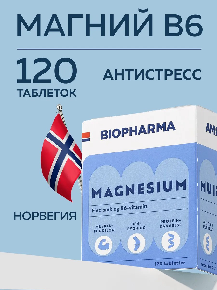 Биологически активная добавка к пище "Биофарма Магний" из Норвегии - это источник магния, витамина В6 и D3, цинка и меди, разработанный для поддержания здоровья и повышения стрессоустойчивости. В каждой упаковке содержится 120 таблеток, что обеспечивает длительный курс приема в 4 месяца. Магний, как важный минерал, участвует в более чем 300 биохимических реакциях в организме, в том числе в работе нервной системы, мышечной функции и поддержании здорового уровня сахара в крови. Витамин D3 способствует усвоению кальция и укреплению костей, а цинк поддерживает иммунную систему и защищает клетки от повреждений. Витамин В 6 принимает участие в белковом обмене и транспортировке железа, а также регулирует возбудимость нервной системы. Biophaema Magnesium может быть полезен для тех, кто испытывает стресс, усталость, мышечные спазмы или нарушения сна.