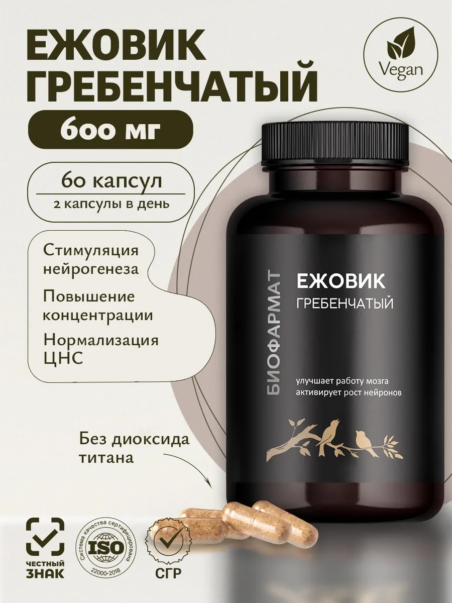 БИОФАРМАТ Ежовик гребенчатый, 60 капсул, природный ноотроп