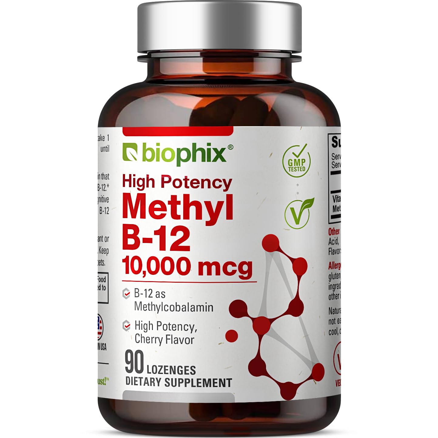 biophix Methyl B-12 10000 mcg 90 Vegan Lozenges Cherry Flavor Extra Strength - Supports Nervous System Immune Health Blood Flow Metabolism Brain Focus Energy