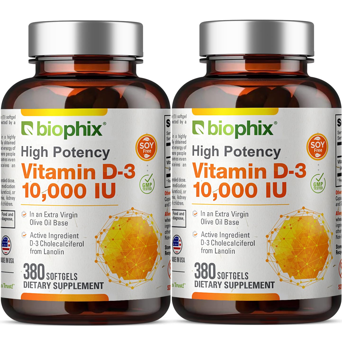 biophix Vitamin D-3 10000 IU 380 Softgels Vitamin 2 Pack - High-Potency in Extra Virgin Olive Oil Non-GMO Soy-Free Supports Strong Bones Immune Health