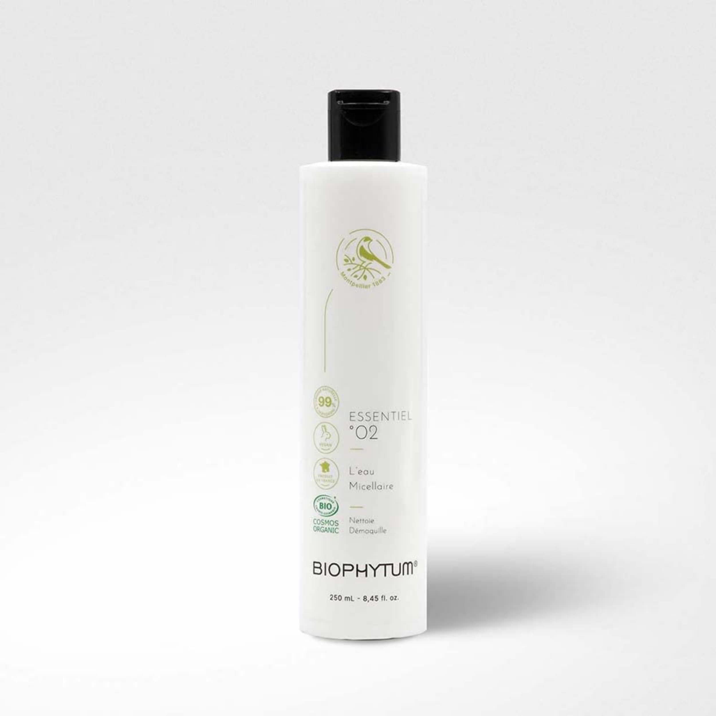 Micellar water cleanses and purifies the skin, removing all traces of creams, makeup, and pollution. Very gentle, micellar water is suitable for all skin types. Lemon Extract - Obtained from fresh organic lemon fruit. Active ingredients present in the plant: vitamins B and C, flavonoids, minerals, essential oil, coumarins, carotenoids, organic acids (citric and malic acids). The ideal active ingredient to brighten the complexion and achieve beautiful skin. Astringent and purifying, it helps tighten pores. Mallow Extract - Obtained from dried organic flowers. Active ingredients present in the plant: glucosides (anthocyanosides: mauvine), uronic mucilage, tannins, flavonoids, minerals (K), vitamins A, B, C, and E. Its hydrating properties, thanks to the mucilage it contains, help combat dryness of the upper layers of the epidermis. Softening and emollient, it leaves skin feeling smooth. Soothing, mallow calms itchy skin. Red Vine Extract - Rich in polyphenols and resveratrol, powerful antioxidants, red vine effectively combats the signs of aging. Astringent, it tightens enlarged pores. Cornflower Floral Water - Known to calm, soothe, and revitalize the skin. DIRECTIONS FOR USE: Apply to the face, eyes, and lips using a cotton pad. No rinsing required. Frequency of use: as often as desired, after showering, to gently cleanse your face. Use after removing makeup. PRECAUTIONS FOR USE: Avoid contact with eyes. Do not ingest. Keep out of reach of children. INCI LIST: Aqua (Water), Rosa Damascena Flower Water , Glycerin, Centaurea Cyanus Flower Water , Benzyl Alcohol, Decyl Glucoside, Citrus Limon (Lemon) Fruit Extract , Vitis VinRed Vine Extract - Rich in polyphenols and resveratrol, powerful antioxidants, red vine effectively combats the signs of aging. Its astringent properties tighten enlarged pores. - Cornflower Floral Water - Known to calm, soothe, and revitalize the skin. Mallow Extract - Obtained from organic dried flowers. Active ingredients present in the plant: glucosides (anthocyanosides: mauvine), uronic mucilage, tannins, flavonoids, minerals (K), Vitamins A, B, C, and E. Its hydrating mucilage helps combat dryness of the upper layers of the epidermis. Softening and emollient, it leaves the skin feeling smooth. Soothing, mallow calms itchy skin. Lemon Extract - Obtained from fresh organic lemon. Active ingredients found in the plant: vitamins B and C, flavonoids, minerals, essential oil, coumarins, carotenoids, organic acids (citric acid, malic acid). The ideal active ingredient to brighten the complexion and achieve beautiful skin. Astringent and purifying, it helps tighten pores. Apply to the face, eyes, and lips using a cotton pad. No rinsing required. Frequency of use: as often as you like, after showering, to gently cleanse your face. Use after removing makeup. Ideally, we recommend using the micellar water with the 10-pack of washable bamboo fiber makeup remover pads. Micellar water cleanses and purifies the skin, removing all traces of creams, makeup, and pollution. Very gentle, micellar water is suitable for all skin types. Rich in cornflower floral water, it helps decongest your skin. Contains organic rose extract for excellent hydration. Cosmébio certified product with over 99 naturally derived ingredients. Made in France.Eau Micellaire nettoyante 250 ml enrichie aux 4 actifs - ESSENTIEL 02 - formule certifiée BIO, cosmos et végan - Flacon biosourcé - 100 FrançaisDESCRIPTION DU PRODUIT L'eau micellaire permet de nettoyer la peau et de la purifier, éliminant toutes les traces de crèmes, de maquillage et de pollution. Très douce, l'eau micellaire convient à tous les types de peaux. Extrait de citron - Obtenu à partir de fruit frais bio. Actif présent dans la plante : vitamine B et C, flavonoïdes, minéraux, huile essentielle, coumarines, caroténoïdes, acides organiques (acides citrique, malique). L'actif idéal pour éclaircir le teint et avoir une belle peau. Astringent et purifiant, il permet de resserrer les pores. Extrait de mauve - Obtenu à partir de fleurs sèches bio. Actif présent dans la plante : glucosides (anthocyanosides : mauvine), mucilage uronique, tanins, flavonoïdes,minéraux (K), Vit. A, B, C, E. Hydratante, les mucilages qu'elle contient lui permettent de lutter contre le dessèchement des couches supérieures de l'épiderme. Adoucissante et émolliente, elle apporte à la peau un toucher douceur. Apaisante, la mauve calme les peaux sujettes à démangeaisons. Extrait de vigne rouge - Riche en polyphénols et en resvératrol, antioxydants puissants, la vigne rouge lutte efficacement contre les signes du temps. Astringente, elle resserre les pores dilatés. Eau florale de bleuet - Reconnu pour calmer, apaiser et revitaliser la peau. CONSEILS D'UTILISATION : Appliquer sur le visage, les yeux et les lèvres à l'aide d'un coton. Sans rinçage. Fréquence d'utilisation : aussi souvent que vous le souhaitez, après la douche, pour laver en douceur votre visage. A utiliser après le démaquillage. PRÉCAUTIONS D'EMPLOI : Éviter le contact avec les yeux. Ne pas ingérer. Tenir hors de portée des enfants. LISTE INCI : Aqua (Water), Rosa Damascena Flower Water , Glycerin, Centaurea Cyanus Flower Water , Benzyl Alcohol, Decyl Glucoside, Citrus Limon (Lemon) Fruit Extract , Vitis VinExtrait de vigne rouge - Riche en polyphénols et en resvératrol, antioxydants puissants, la vigne rouge lutte efficacement contre les signes du temps. Astringente, elle resserre les pores dilatés. - Eau florale de bleuet - Reconnu pour calmer, apaiser et revitaliser la peau. Extrait de mauve - Obtenu à partir de fleurs sèches bio. Actif présent dans la plante : glucosides (Anthocyanosides : mauvine), mucilage uronique, tanins, flavonoïdes, minéraux (K), Vit. A, B, C, E. Hydratante, les mucilages qu'elle contient lui permettent de lutter contre le dessèchement des couches supérieures de l'épiderme. Adoucissante et émolliente, elle apporte à la peau un touch