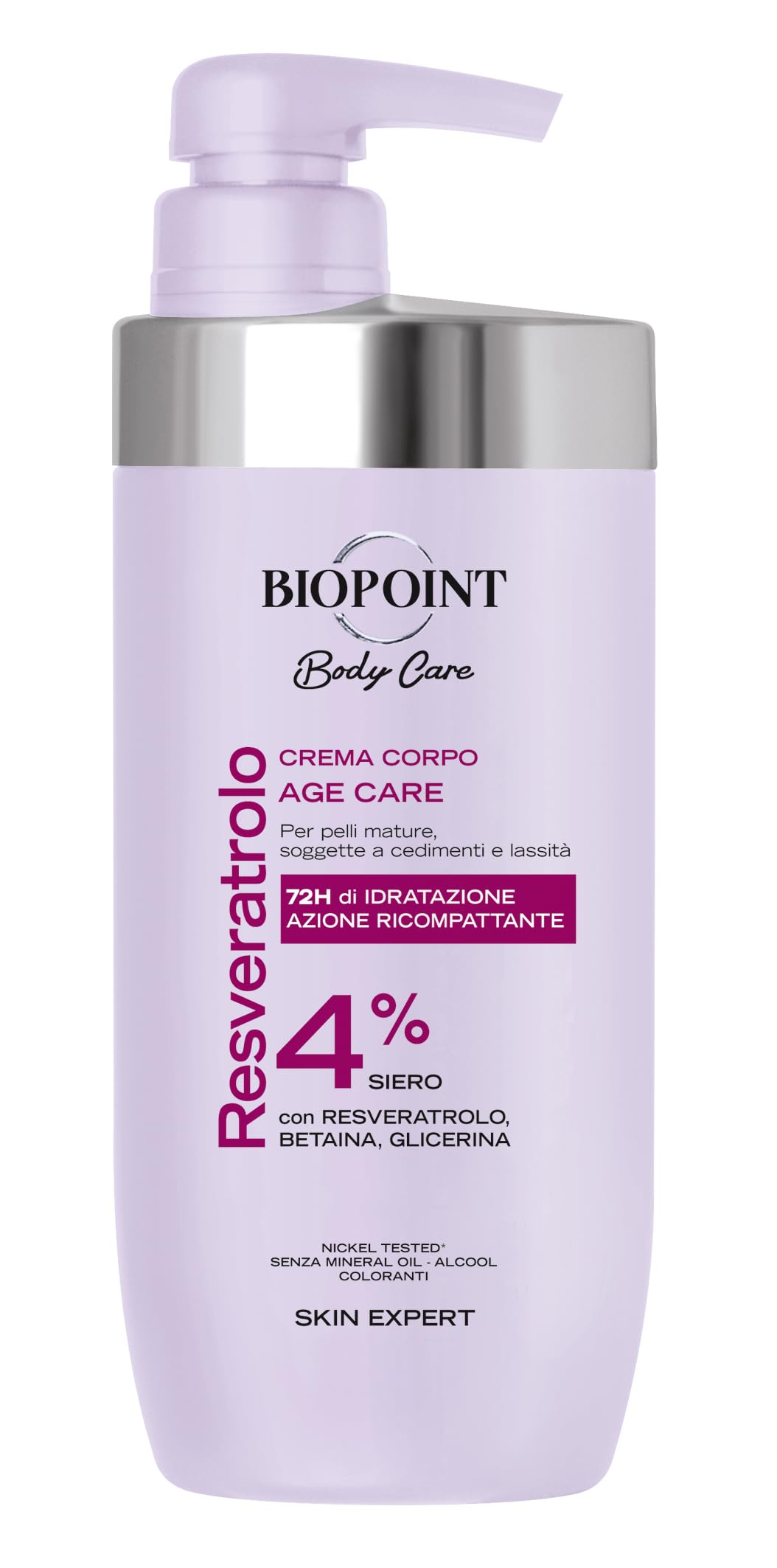 This firming, creamy, and enveloping body cream for mature skin nourishes, hydrates, and protects skin prone to sagging and fatigue, enhancing its natural radiance. INGREDIENTS Aqua, Cetearyl Alcohol, Glycerin, Isopropyl Palmitate, Cetearyl Isononanoate, Oleyl Erucate, Betaine, Sorbitol, Butyrospermum Parkii Butter, Canola Oil, Propylheptyl Caprylate, Resveratrol, Prunus Amygdalus Dulcis Oil, Linum Usitatissimssimalissimy. Rosehip Seed Oil, Pentylene Glycol, Steareth-21, Dimethicone, Fragrance, Sorbitan Stearate, Carbomer, Ethylhexylglycerin, Tetrasodium Glutamate Diacetate, Tocopheryl Triethanolamine, Phenoxyethanol, Citronellol, Amyl Salicylate, Tetramethyl Acetate, Thalenes, Limonene, Geraniol Linalyl Acetate, Rose Dimethyl Phenethyl Acetate, Ketones, Coumarin SAFETY WARNING For external use only. Avoid contact with eyes. See moreContents: 1 Biopoint – Body Cream, 500 ml. With resveratrol, betaine, and glycerin. Promotes increased skin hydration from the first application. Its creamy, enveloping texture nourishes, hydrates, and protects mature skin prone to sagging and fatigue, enhancing its natural radiance.Biopoint - Crème Corps Age Care, Action Recompactante pour la Peau Mature, sujette à l'affaissement et à la Laxité, 72 heures d'Hydratation, 500 mlDESCRIPTION DU PRODUIT DESCRIPTION DU PRODUIT Crème corporelle pour peaux matures à action raffermissante, crémeuse et enveloppante, nourrit, hydrate et protège la peau sujette à affaissement et lassité, en mettant en valeur son éclat naturel. INGRÉDIENTS Aqua, Cetearyl Alcohol, Glycerin, Isopropyl Palmitate, Cetearyl Isononanoate, Oleyl Erucate, Betaine, Sorbitol, Butyrospermum Parkii Butter, Canola Oil, Propylheptyl Caprylate, Resveratrol, Prunus Amygdalus Dulcis Oil, Linum Usitatissimssimalissimy. um Seed Oil, Pentylene Glycol, Steareth-21, Dimethicone, Parfum, Sorbitan Stearate, Carbomer, Ethylhexylglycerin, Tocopheryl Acétate de tétrasodium Glutamate Diacétate de Tocopherol Triethanolamine, Phenoxyethanol, Citronellol, Amyl Salicylate, Tetramethyl Acetylocéthylocetylocetylocéthylocéthylocéthylocéthylocéthyltahydronaph. Thalenes, Limonène, Linalyl Acétate de géraniol, Dimethyl Phenethyl Acétate de rose, Ketones, Coumarin AVERTISSEMENT DE SÉCURITÉ Usage extérieur uniquement. Évitez tout contact avec les yeux. Voir plusContenu : 1 Biopoint – Crème pour le corps, 500 ml. Avec resveratrol, bétaïne et glycérine. Favorise une augmentation de l'hydratation cutanée dès la première application. Texture crémeuse et enveloppante qui nourrit, hydrate et protège la peau mature, sujette à l'affaissement et à la lassité, mettant en valeur son éclat naturel.