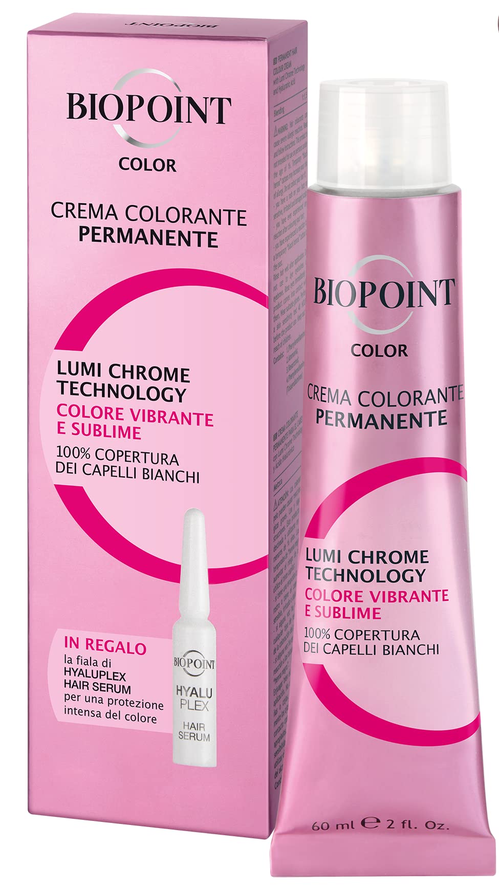 BIOPOINT Biopoint Color - Permanent Hair Color Cream with Hyaluplex Serum Bottle Hair Dye with Hyaluronic Acid nourishes hydrates and gives a vibrant and intense color 60 ml
