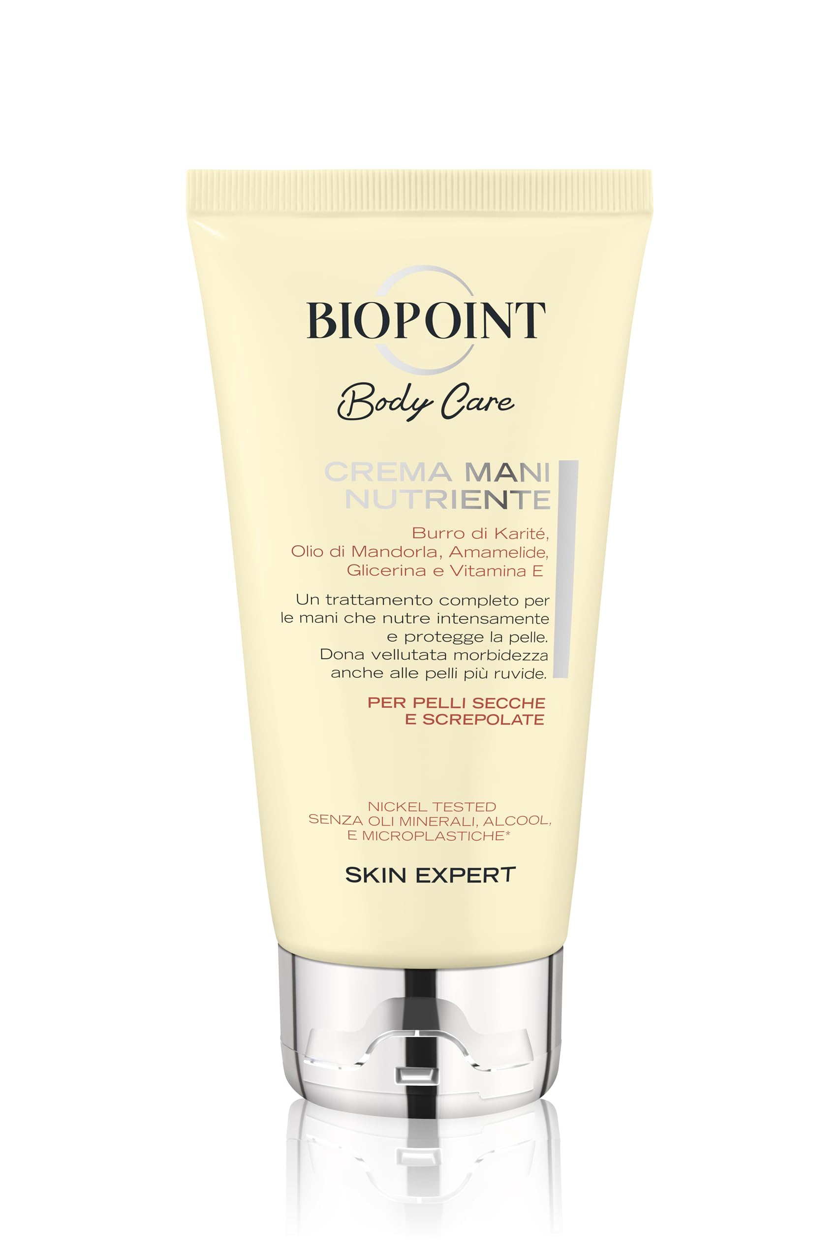 Biopoint - Crème mains nourrissante, enrichie en beurre de karité, huile d'amande et glycérine, crème mains pour peaux sèches et fissurées, 75 ml