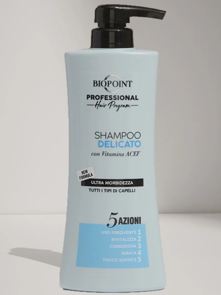 Натуральный шампунь BIOPOINT PROFESSIONAL – это высокое качество ухода для Ваших волос. Профессиональная формула ДЕЛИКАТНЫЙ разработана специально для глубокой очистки поврежденных и хрупких волос. Деликатная программа по уходу за волосами идеально подходит для ежедневного применения для всех типов волос. Инновационная формула Биопоинт включает комплекс Кератина и Масло Моринги, укрепляет, нежно увлажняет кожу головы и волосы. Шампунь мужской и женский обеспечивает 6 явных результатов, абсолютно как профессиональный салонный шампунь: восстанавливает, укрепляет, питает, смягчает, разглаживает, усиливает яркость и блеск.