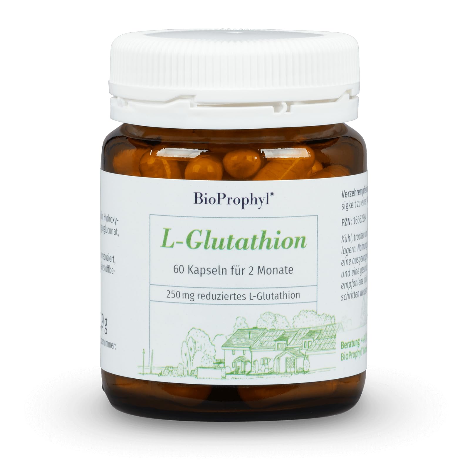 L-glutathione G-SH from Bioprophyl contains 250mg of pure, reduced L-glutathione optimally supplemented with the antioxidant trace element manganese.Glutathion is a sulfuric tripeptide that consists of the amino acids glutamic acid (e), cysteine ??(c) and glycin (g).Glutathion is one of the most important and strongest antioxidants.The Manganese trace element contributes to the protection of the cells from oxidative stress and also makes a contribution to maintaining healthy bones and is involved in the formation of the connective tissue and in the energy metabolism.Glutathion is recommended in combination with Shield, Coenzyme Q10 and alpha lipoic acid.In order to obtain glutathione as long as possible in its reduced form, further vitamins are recommended, especially the trace elements selenium and zinc in combination with the antioxidant vitamins C and E as well as folic acid, vitamin B12 and manganese, all in manganese - all in Shieldcan be found in optimal composition.Since the Manganese trace element is not included in Shield, L-Glutathione G-SH was supplemented with manganese. GENERAL INFORMATION Dietary supplement with 250mg of pure, reduced L-glutathione G-SH optimally supplemented with manganese Ingredients / ingredients 53.7% glutathione reduced, inulin, hydroxypropylmethyl cellulose (vegetable cellulose capsule), 1.9% manganese luconate, separator silica. Instructions Daily consumption: 1 capsule with a little liquid for a meal.Nutrients per capsule: L-glutathione red.250 mg, inulin 105 mg, manganese 1 mg (50% NRV*).*NRV = Nutrient Reference Values Warnings The specified, recommended, daily consumption recommendation must not be exceeded.Storage cool, dry and outside the range of small children. Dietary supplements do not replace a varied diet. LEGAL NOTICE Name & address of the company: Bioprophyl® GmbH - Erlenweg 2 - 56729 Nitz contractual partner of this offer is Bioprophyl GmbH.With your order, you also agree to the terms and conditions of Bioprophyl GmbH.You can find these terms and conditions via the link to the seller in the purchase offer.The General Terms and Conditions also contain all information on distance sales, including the cancellation policy. Address manufacturer/importer Bioprophyl® GmbH - Erlenweg 2 - 56729 Nitz More 60 vegetarian capsules - made in Germany.Without aroma or dyes and free of salt, yeast, soy, milk, wheat, gluten and free of all animal components and frequent allergens.L-glutathione reduced is one of the strongest antioxidants.Manganese also contributes to maintaining healthy cooking and forming the connective tissue.250 mg of pure reduced L-glutathione optimally supplemented with the antioxidant trace element manganese. L-Glutathion G-SH von BioProphyl enthält 250mg reines, reduziertes L-Glutathion optimal ergänzt mit dem antioxidativem Spurenelement Mangan. Glutathion ist ein schwefelhaltiges Tripeptid, das aus den Aminosäuren Glutaminsäure (E), Cystein (C) und Glycin (G) besteht. Glutathion gilt als eines der bedeutendsten und stärksten Antioxidantien. Das Spurenelement Mangan trägt zum Schutz der Zellen vor oxidativem Stress bei und leistet darüber hinaus einen Beitrag zur Aufrechterhaltung gesunder Knochen und ist an der Bildung des Bindegewebes, sowie am Energiestoffwechsel beteiligt. Glutathion empfiehlt sich in Kombination mit Shield, Coenzym Q10 und Alpha-Liponsäure. Um Glutathion solange wie möglich in seiner reduzierten Form zu erhalten, werden weitere Vitamine empfohlen, vor allem die Spurenelemente Selen und Zink in Kombination mit den antioxidativen Vitaminen C und E sowie Folsäure, Vitamin B12 und Mangan, die - bis auf Mangan - alle in Shield in optimaler Zusammensetzung zu finden sind. Da das Spurenelement Mangan nicht in Shield enthalten ist, wurde L-Glutathion G-SH mit Mangan ergänzt. ALLGEMEINE ANGABEN Nahrungsergänzung mit 250mg reinem, reduziertem L-Glutathion G-SH optimal ergänzt mit Mangan INHALTSSTOFFE / ZUTATEN 53,7% Glutathion reduziert, Inulin, Hydroxypropylmethylcellulose (pflanzliche Zellulosekapsel), 1,9% Mangangluconat, Trennmittel Kieselsäure. GEBRAUCHSANWEISUNG Tagesverzehrempfeglung: 1 Kapsel mit etwas Flüssigkeit zu einer Mahlzeit. Nährstoffe pro Kapsel: L-Glutathion red. 250 mg, Inulin 105 mg, Mangan 1 mg (50% NRV*). *NRV = Nutrient Reference Values WARNHINWEISE Die angegebene, empfohlene, tägliche Verzehrempfehlung darf nicht überschritten werden. Kühl, trocken und außerhalb der Reichweite von Kleinkindern lagern.Nahrungsergänzungen ersetzen keine abwechslungsreiche Ernährung. RECHTLICHE HINWEISE Name & Anschrift des Unternehmens: BioProphyl® GmbH - Erlenweg 2 - 56729 Nitz Vertragspartner dieses Angebotes ist die Bioprophyl GmbH. Mit Ihrer Bestellung erklären Sie sich auch mit den AGB der Bioprophyl GmbH einverstanden. Sie finden diese AGB über den Link zum Verkäufer im Kaufangebot. Die AGB enthalten auch sämtliche Informationen zum Fernabsatzverkehr, einschließlich der Widerrufsbelehrung. ANSCHRIFT HERSTELLER/IMPORTEUR BioProphyl® GmbH - Erlenweg 2 - 56729 Nitz Mehr60 vegetarische Kapseln - hergestellt in Deutschland. Ohne Aroma- oder Farbstoffe und frei von Salz, Hefe, Soja, Milch, Weizen, Gluten und frei von jeglichen tierischen Bestandteilen und häufigen Allergenen. L-Glutathion reduziert ist eines der stärksten Antioxidantien. Mangan trägt darüber hinaus zur Aufrechterhaltung gesunder Kochen und der Bildung des Bindegewebes bei. 250 mg reines reduziertes L-Glutathion optimal ergänzt mit dem antioxidativen Spurenelement Mangan.BioProphyl® L-Glutathion G-SH - 250mg reines reduziertes L-Glutathion mit Mangan - 60 vegetarische Kapseln